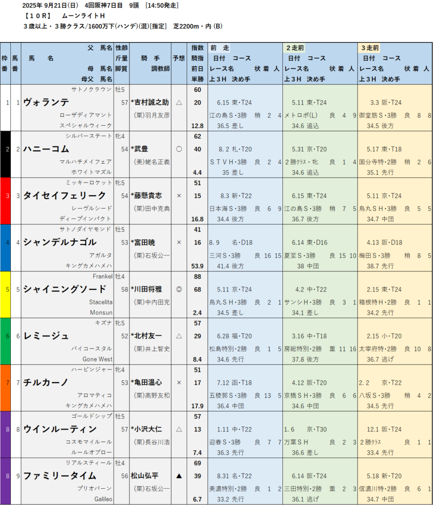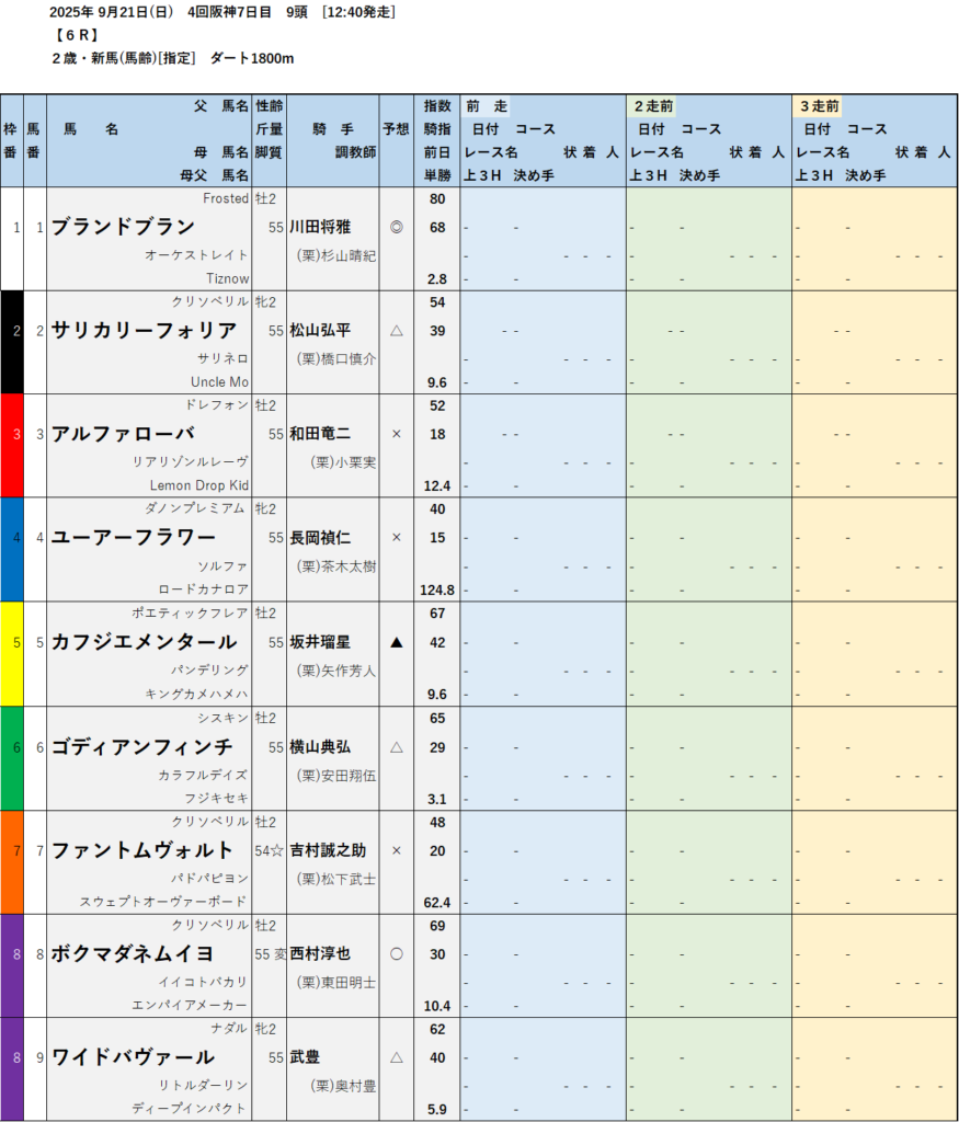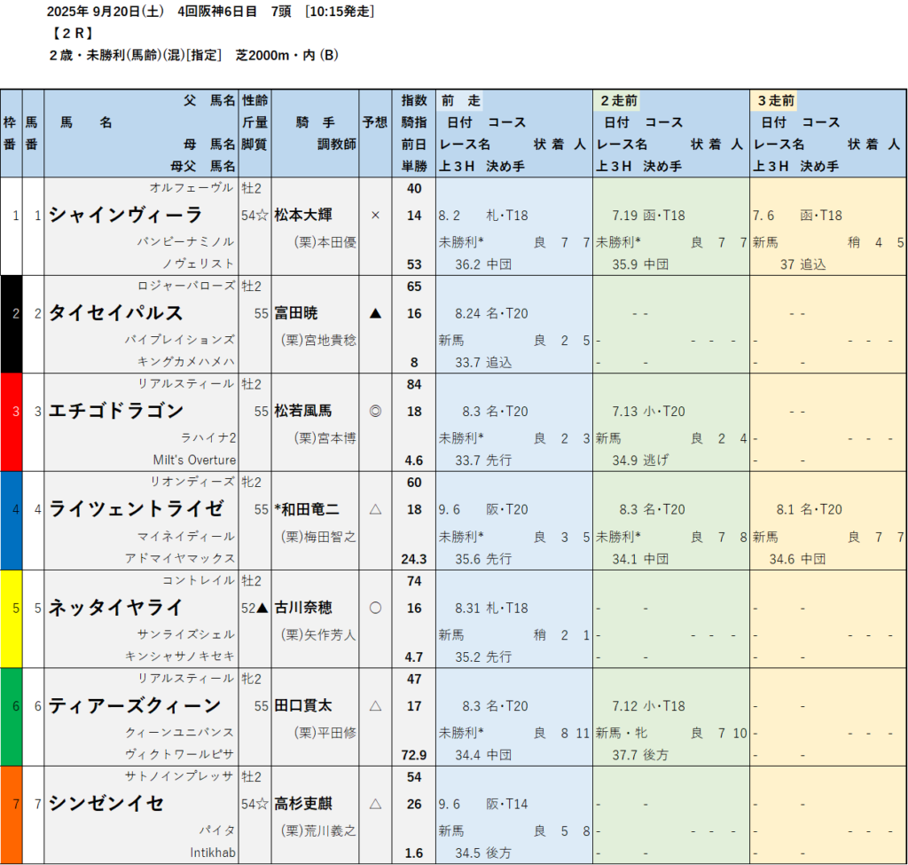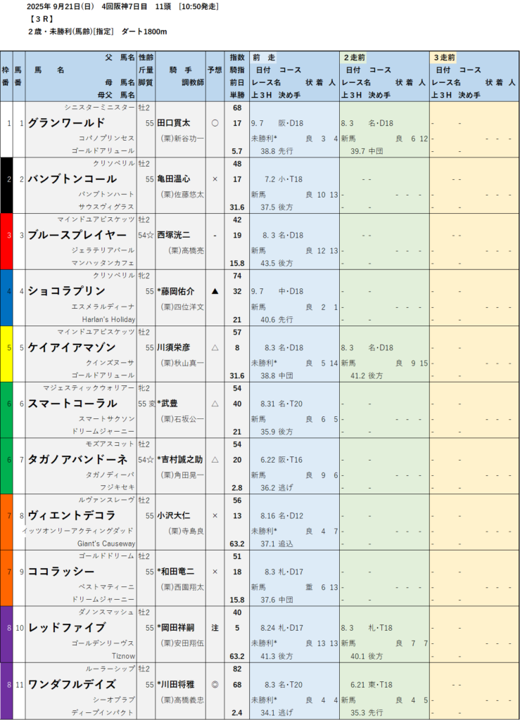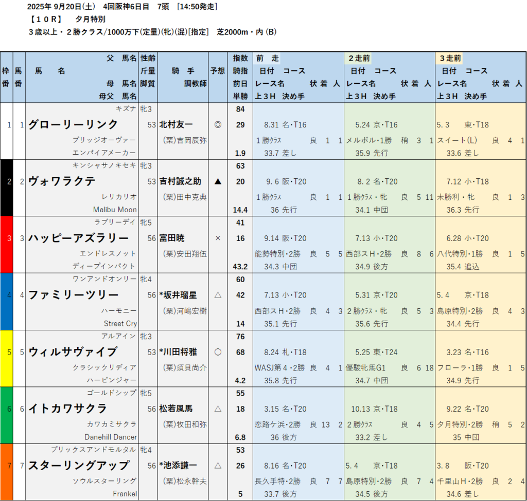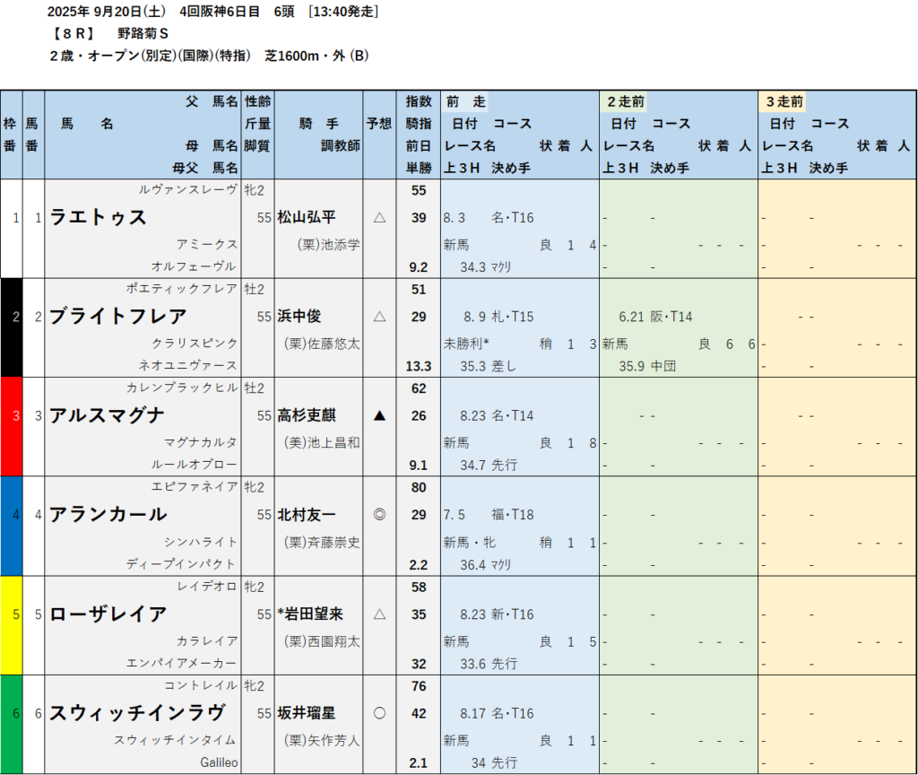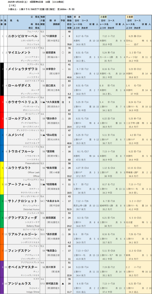 【無料中央競馬予想】2025年9月20日(土)21日(日) 神戸新聞杯 GⅡ