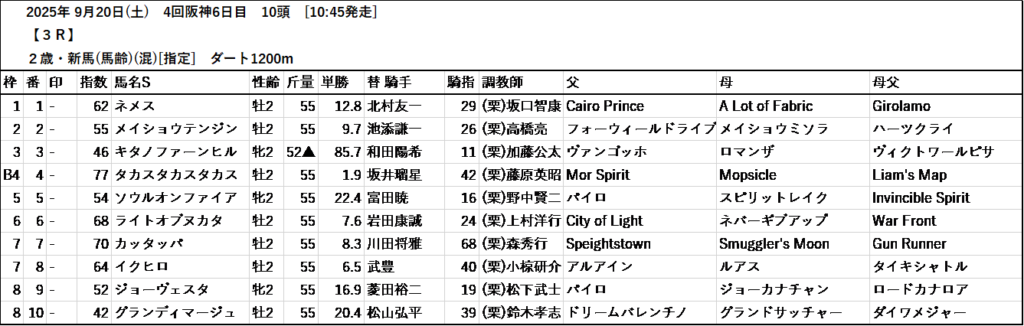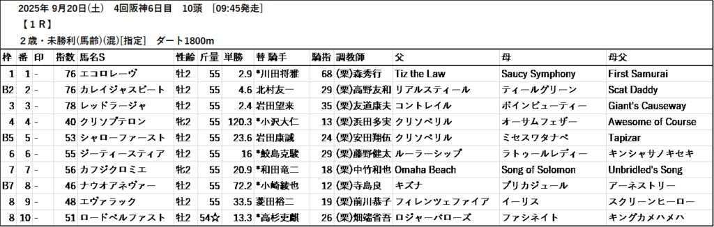 本日のテッパン馬は 2R・6R・7R・9R・10R です。