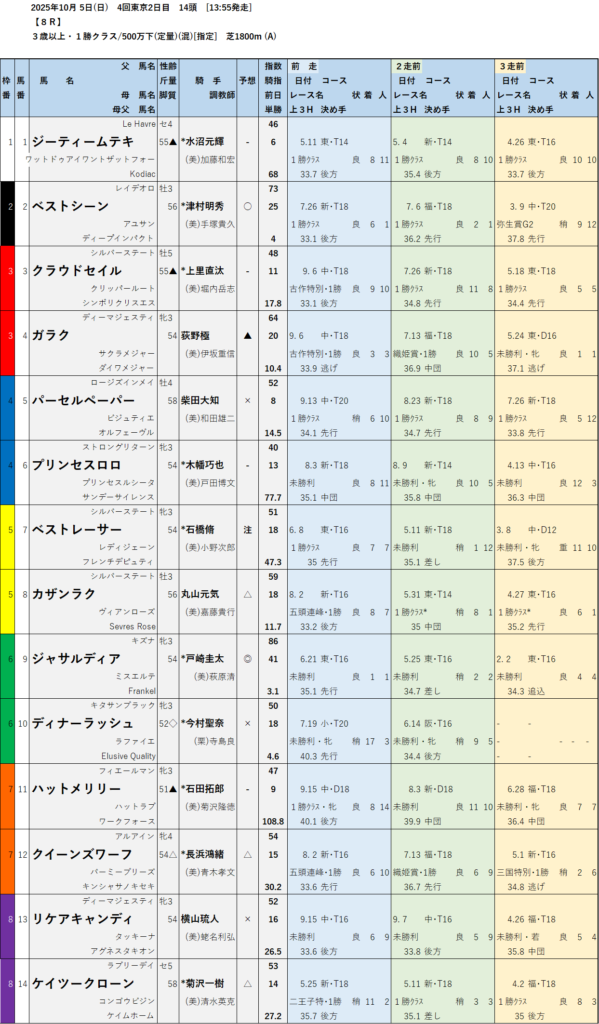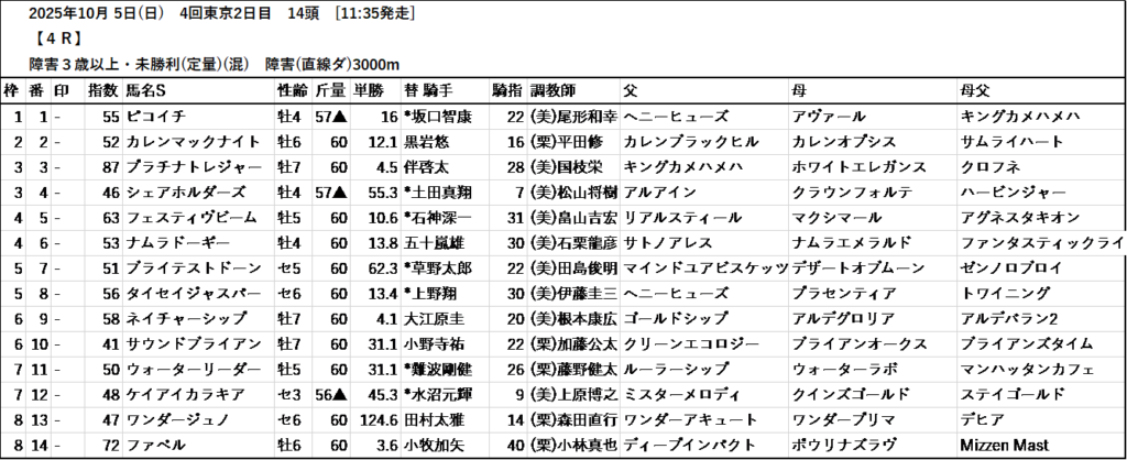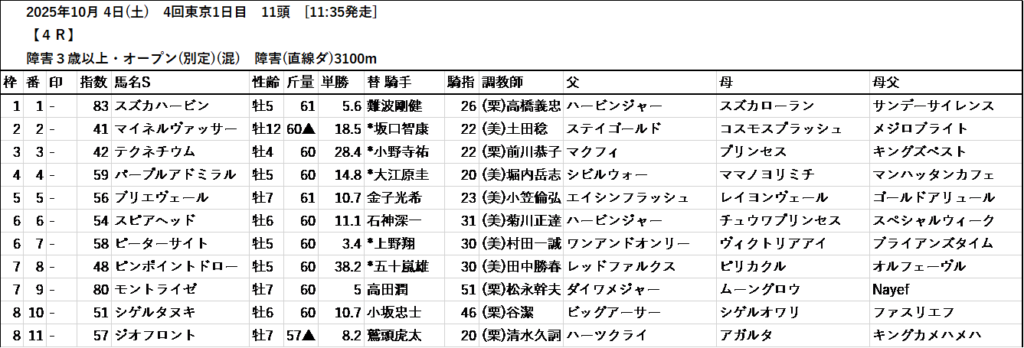 本日のテッパン馬は 8R・9R・10R・11R です。