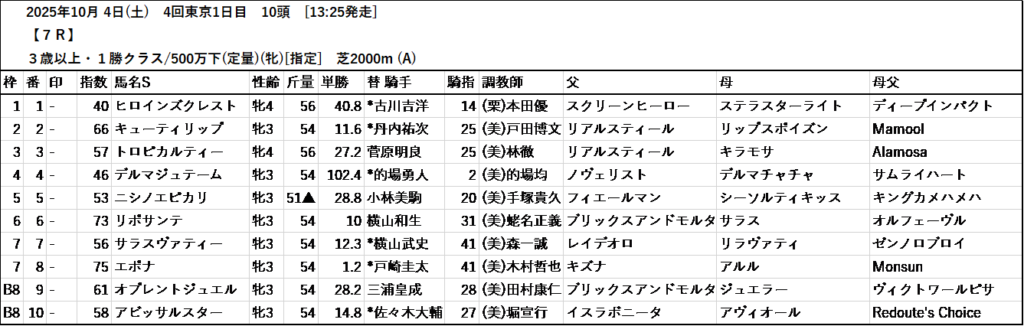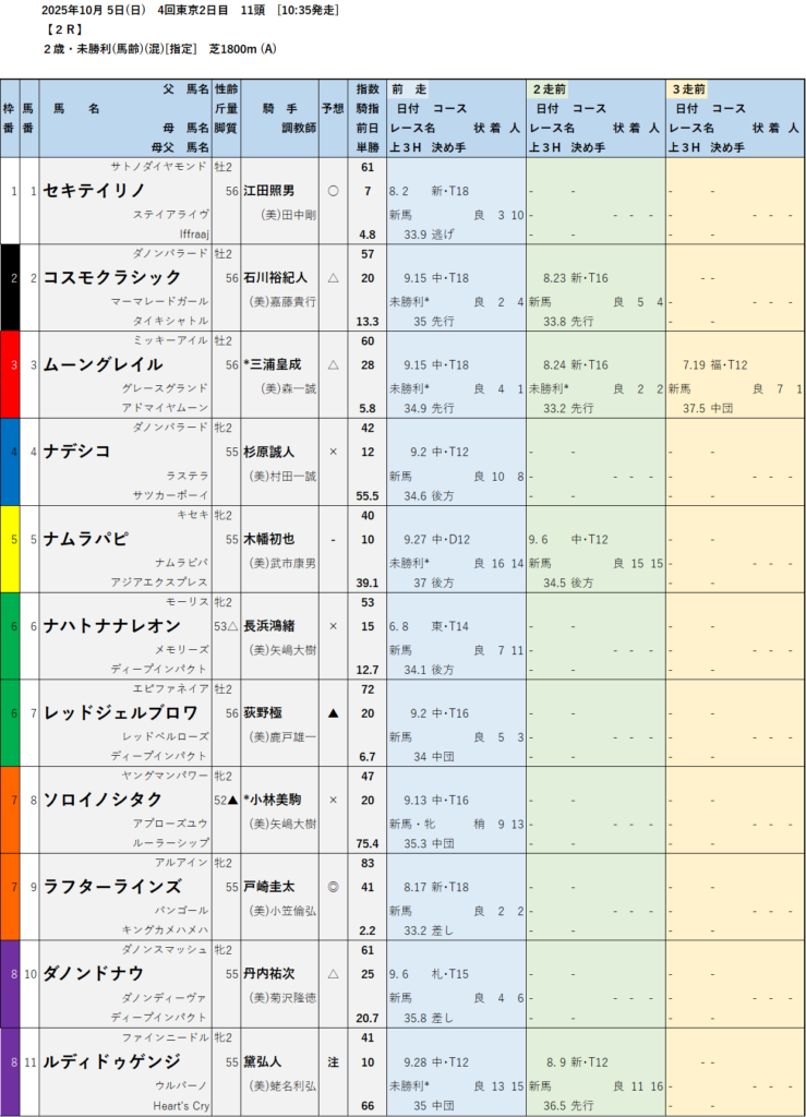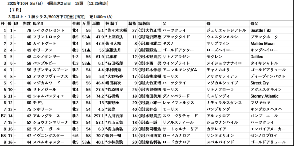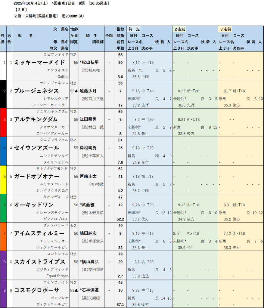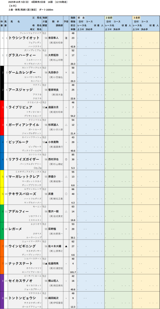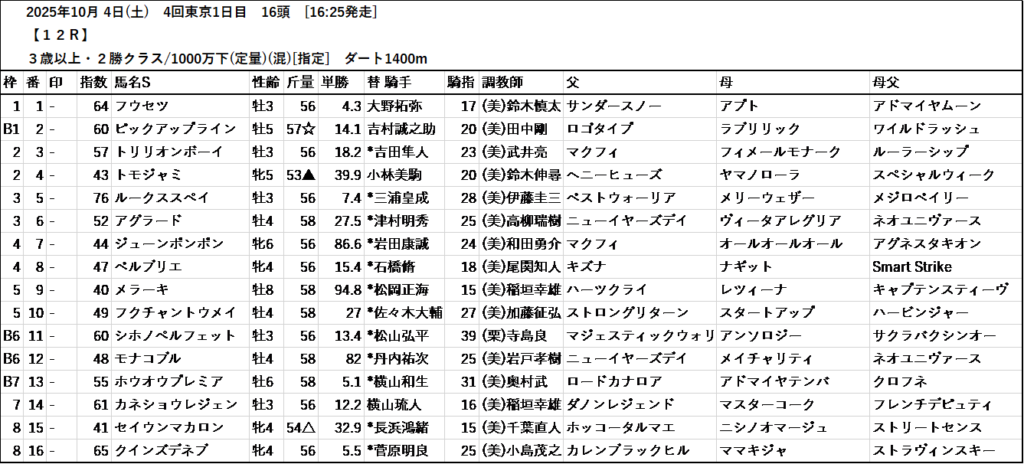 本日のテッパン馬は 2R・6R・8R・9R・10R・11R・12R です。
