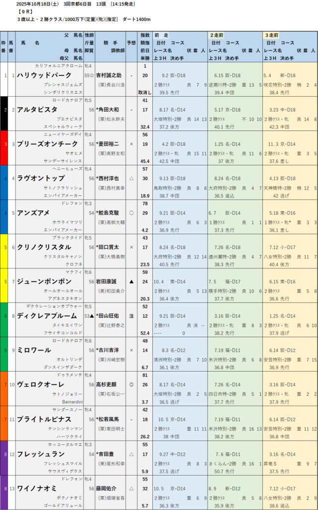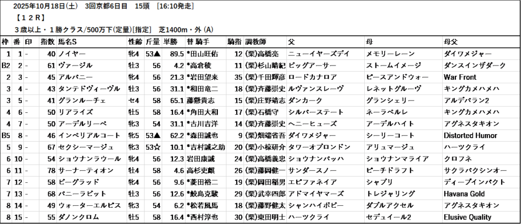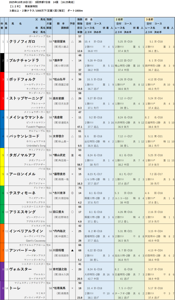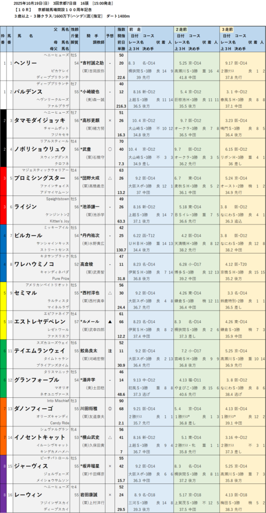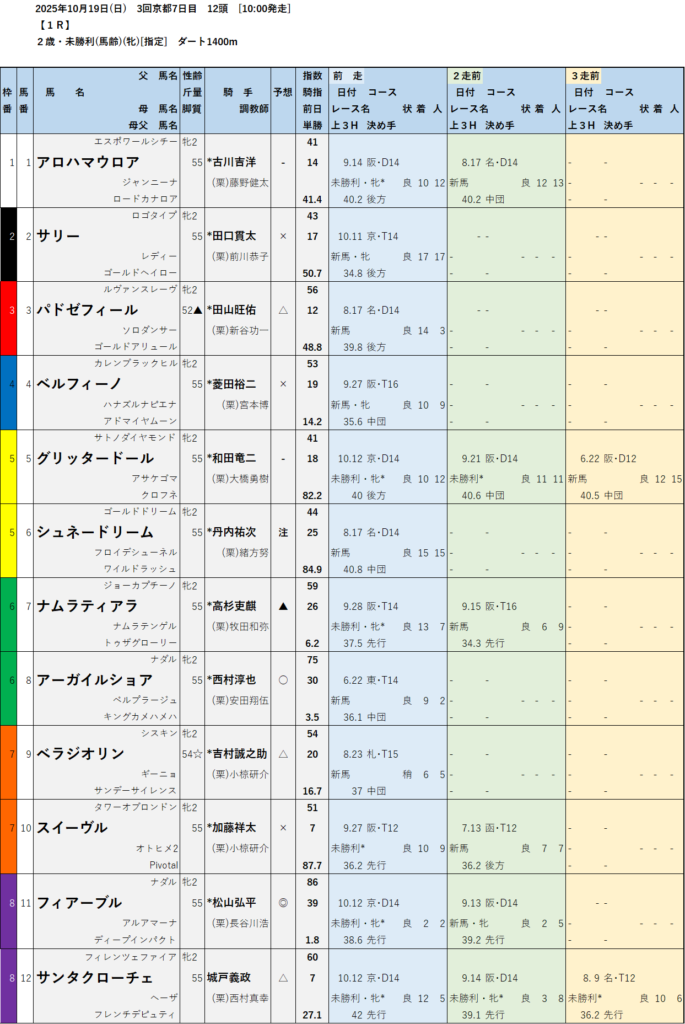 テッパン馬には届かないものの指数の高いレースも予想しています。
