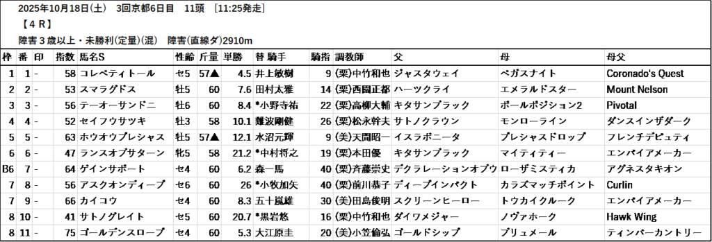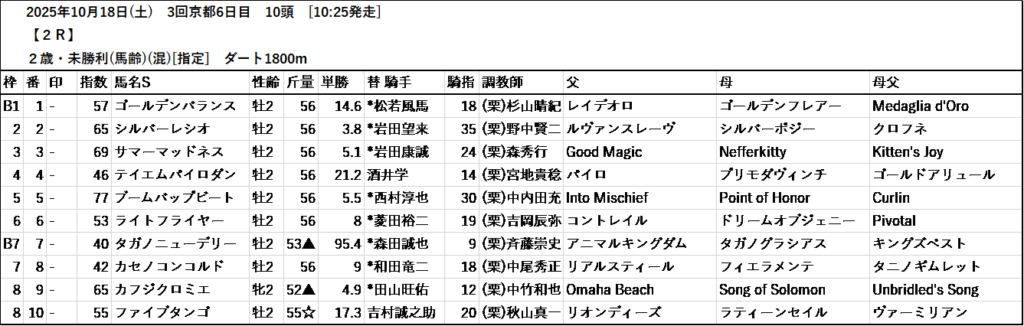 本日のテッパン馬は 1R・5R・6R・10R です。