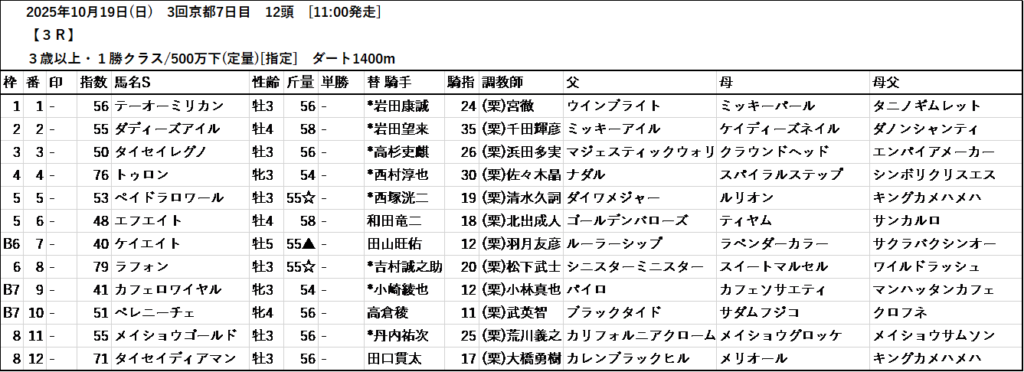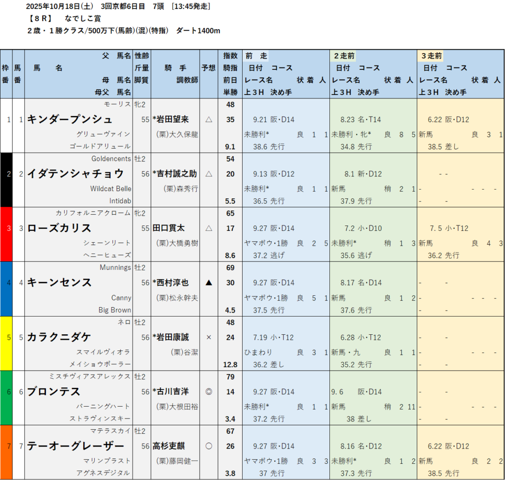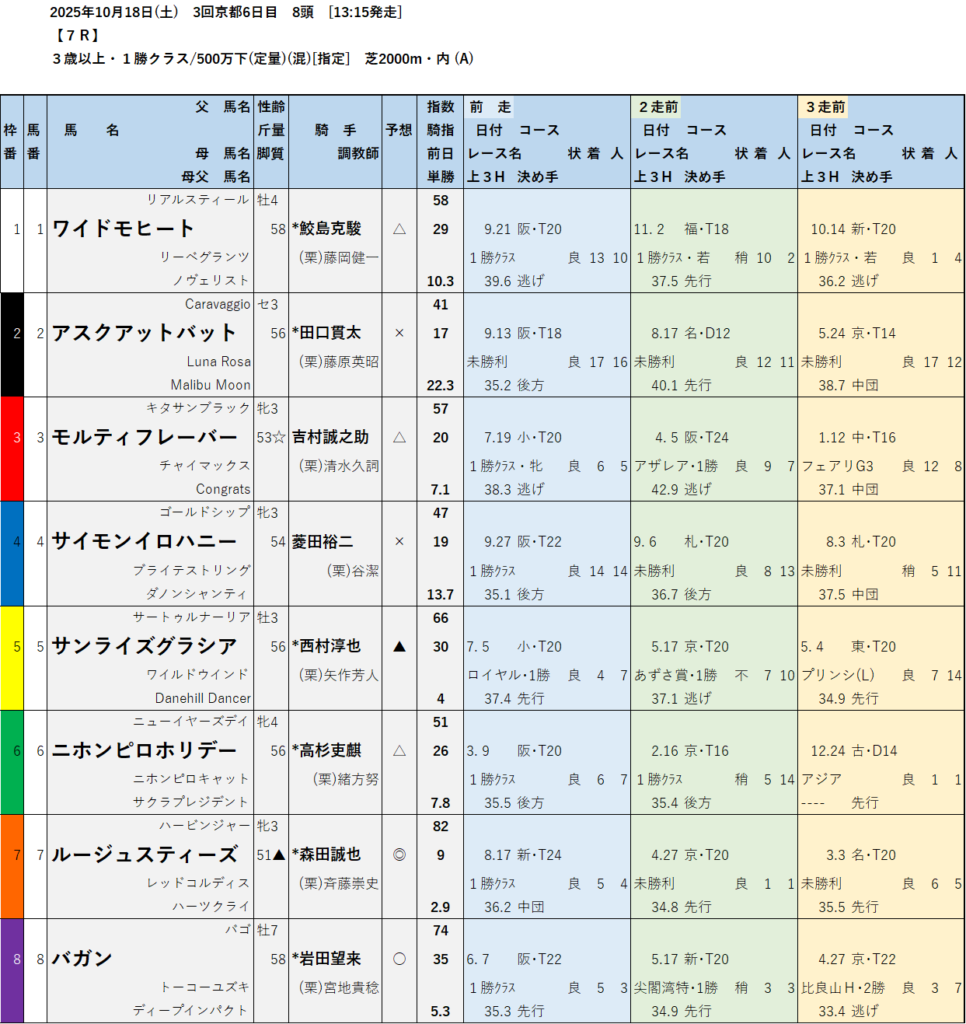 本日のテッパン馬は 1R・2R・4R・7R・8R・10R・11R です。