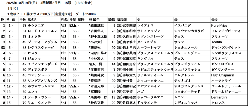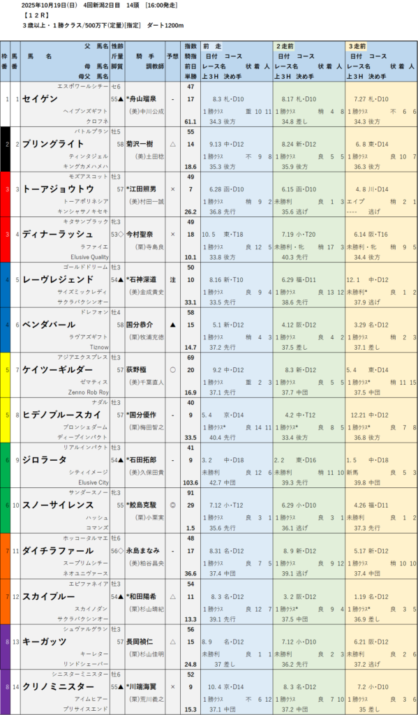 本日のテッパン馬は 2R・4R・6R・7R・10R・11R・12R です。