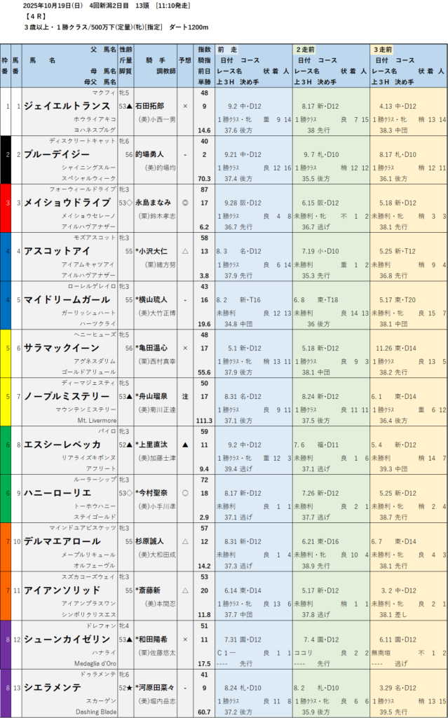 本日のテッパン馬は 4R・12R です。