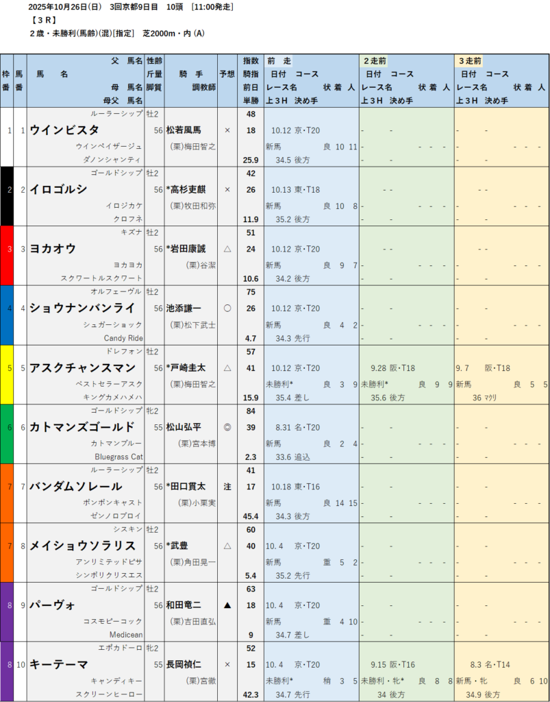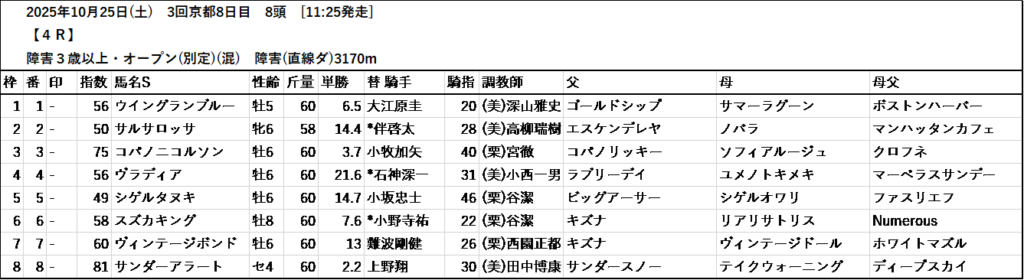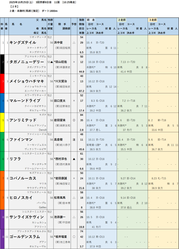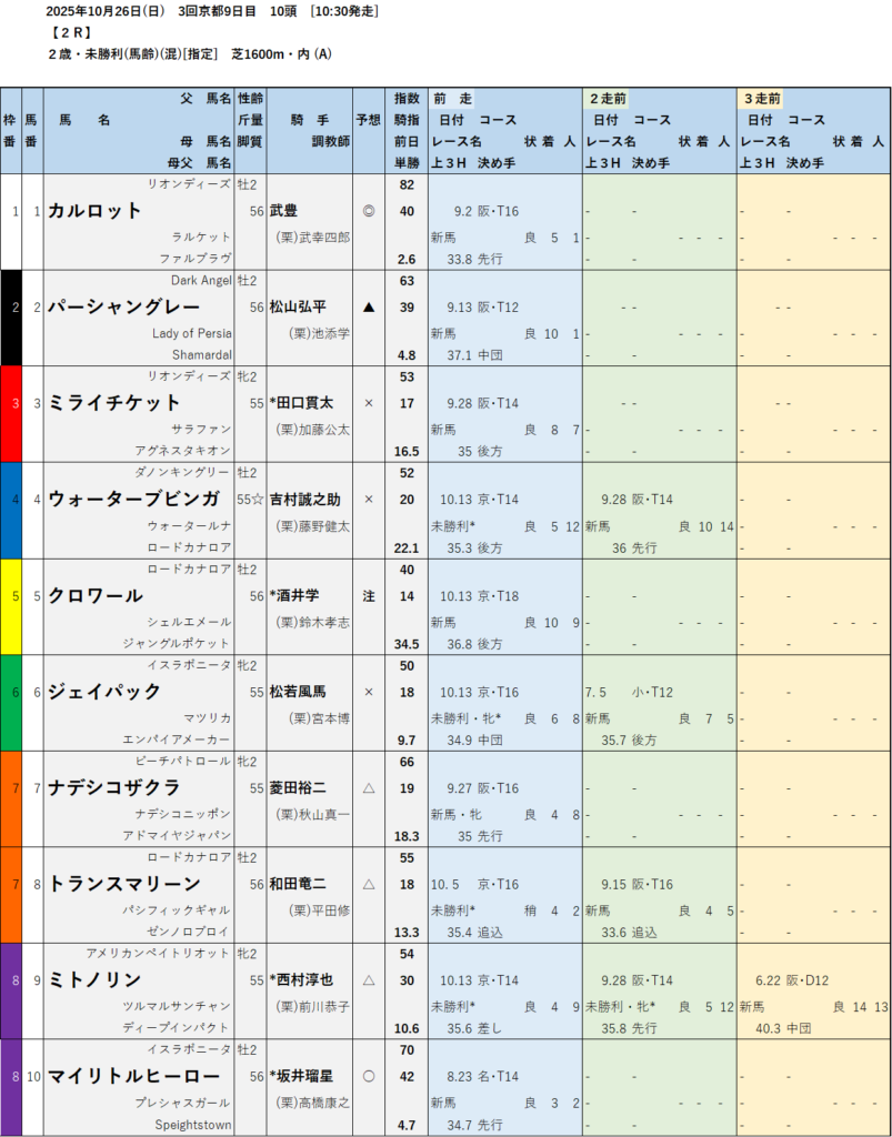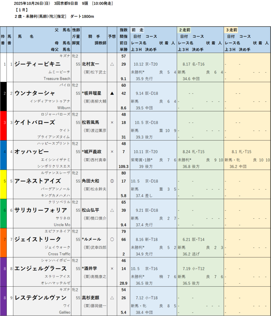 本日のテッパン馬は 3R・5R・6R・9R です。