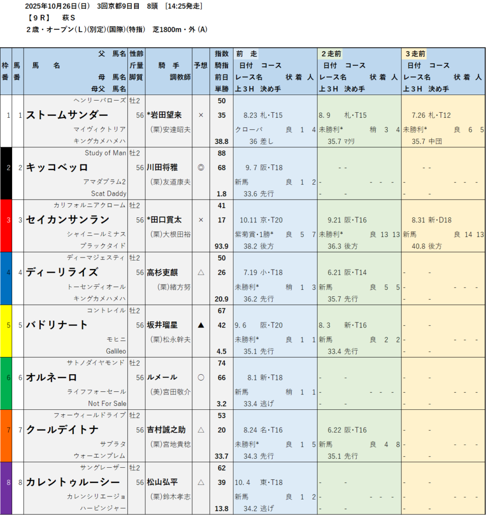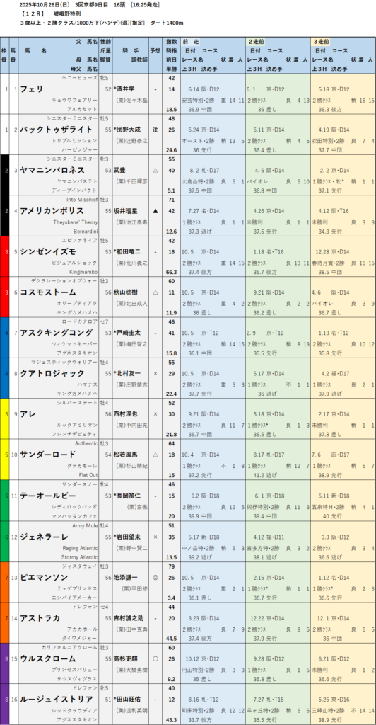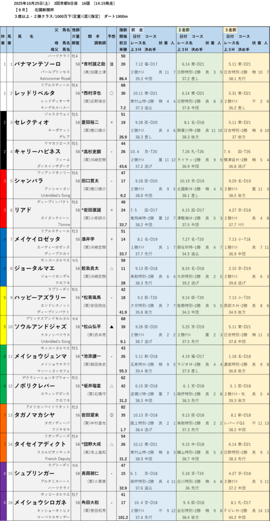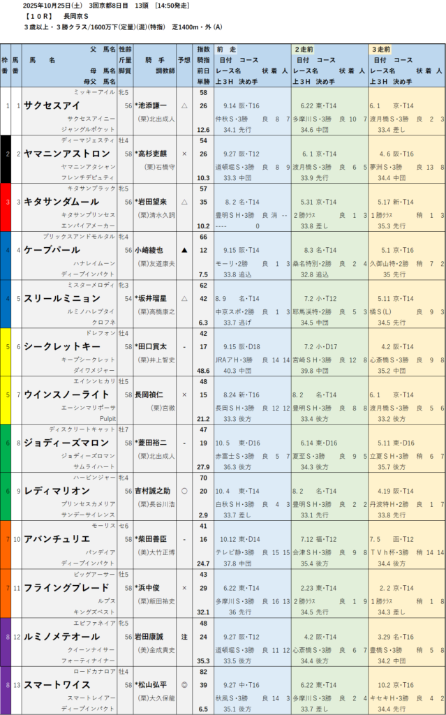 テッパン馬には届かないものの指数の高いレースも予想しています。