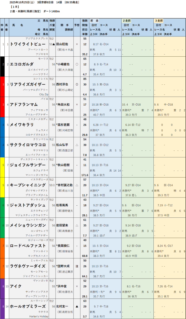 尚、以下の予想はテッパンレースの場合赤字で表記しています。