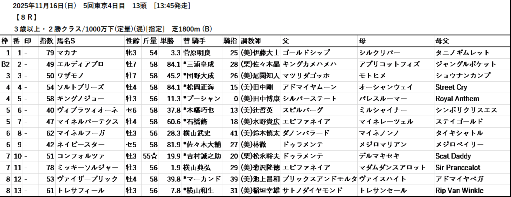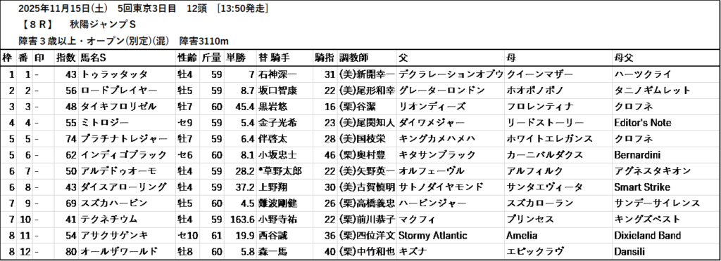 本日のテッパン馬は 1R・2R・3R・4R・5R・6R・9R・12R です。