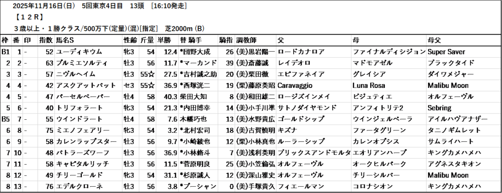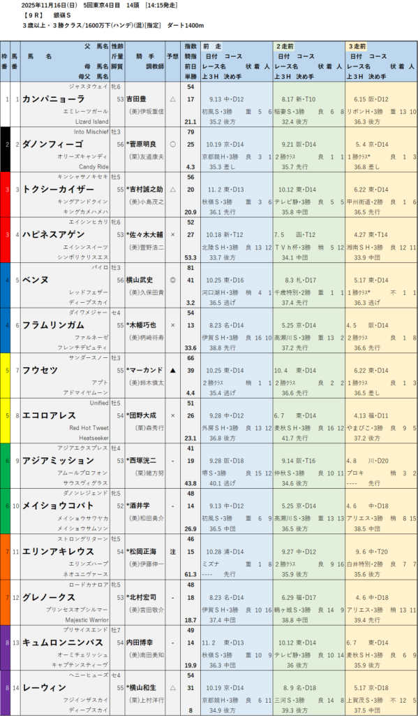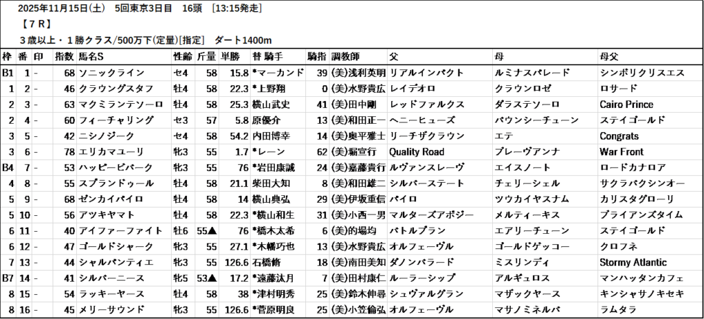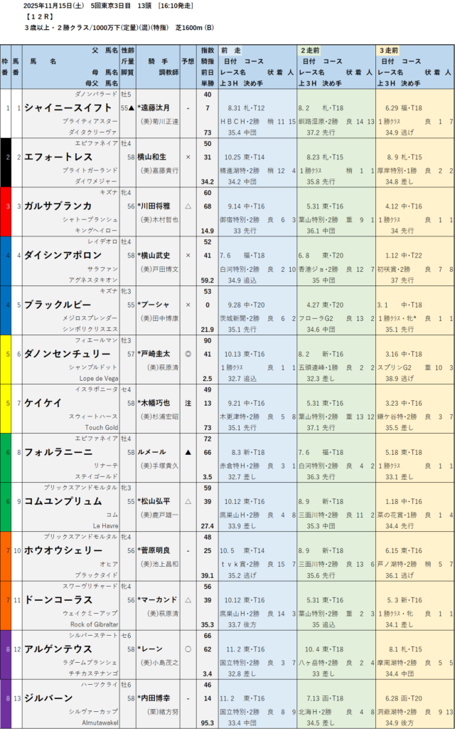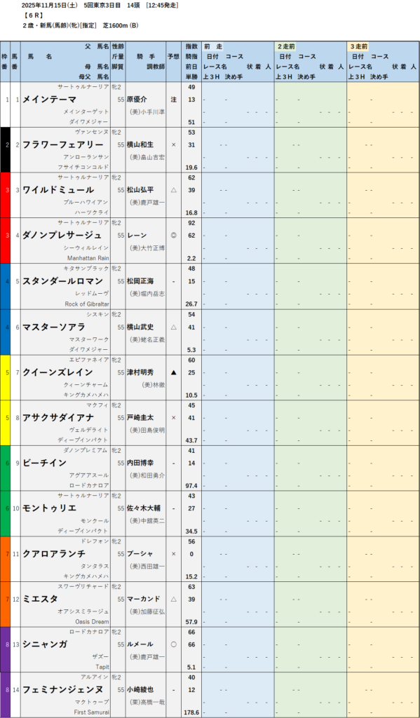 テッパン馬にはとどかないが指数が高いレースも予想しています。