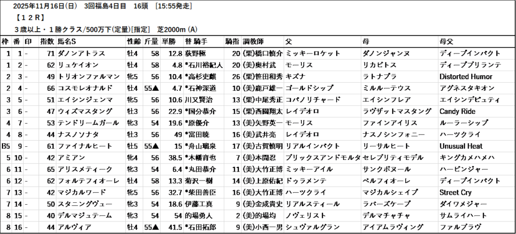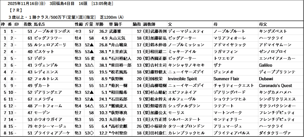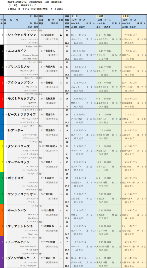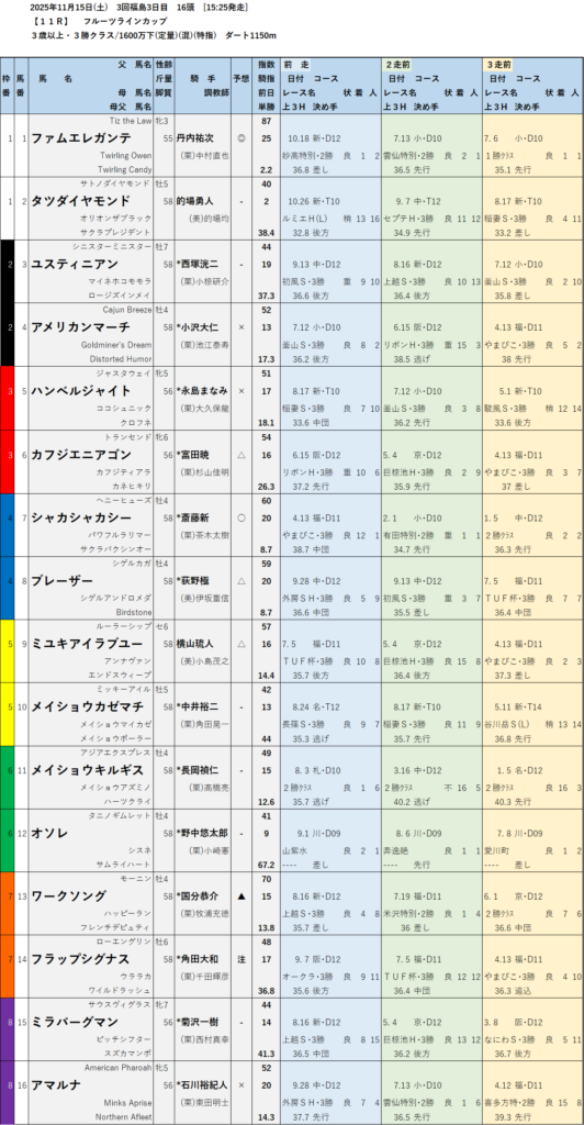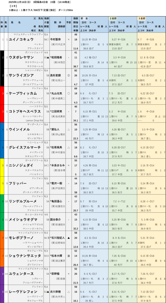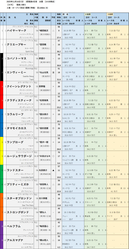 テッパン馬には届かないものの指数の高いレースも予想しています。