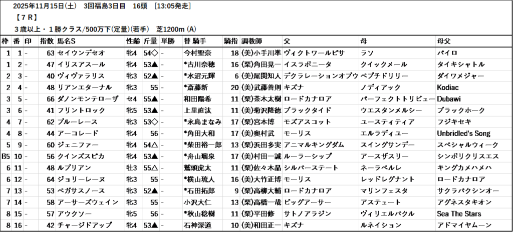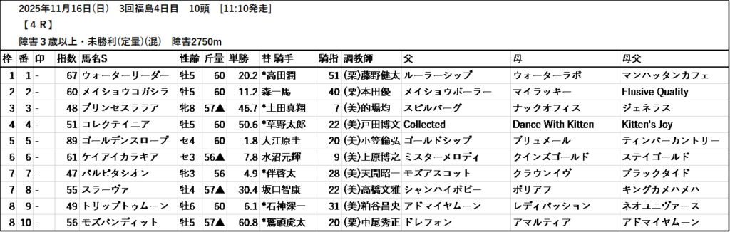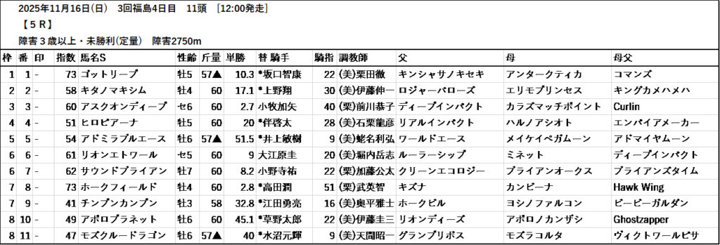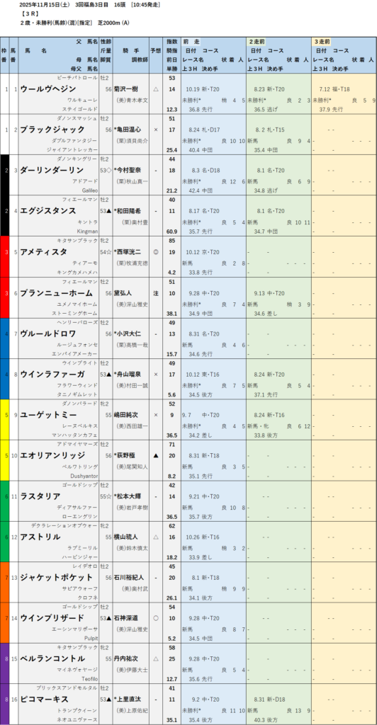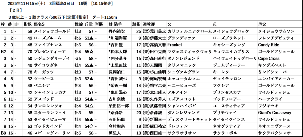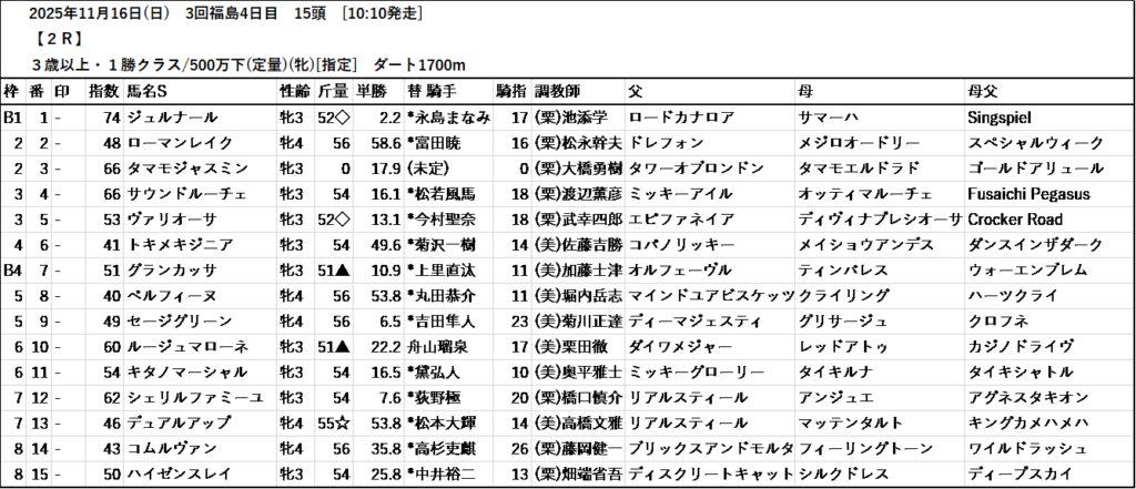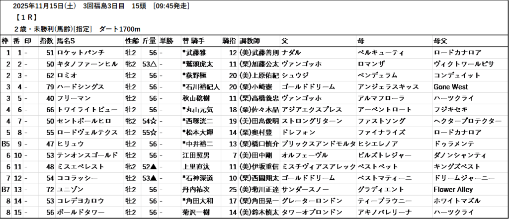 テッパン馬には届かないものの指数の高いレースも予想しています。