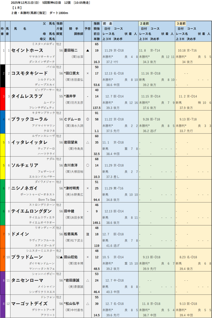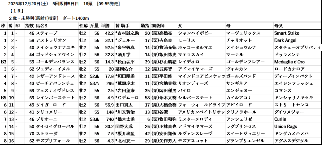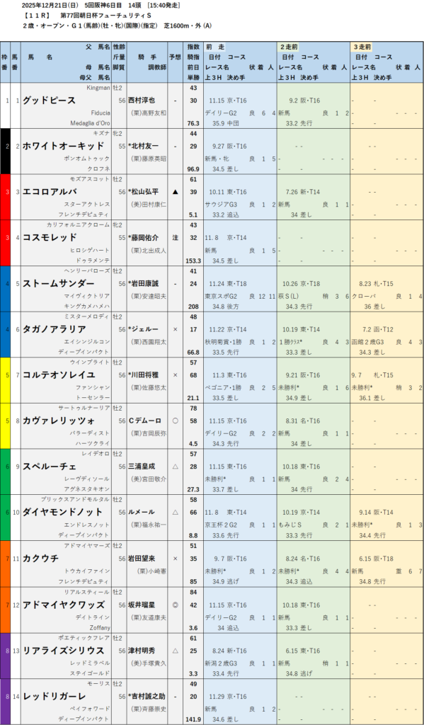 【無料中央競馬予想】2025年12月20日(土)21日(日)朝日杯フューチュリティステークスGⅠ