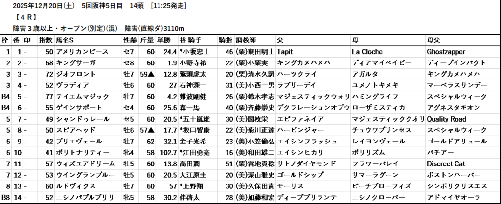 本日のテッパン馬は 1R・9R・11R・12R です。