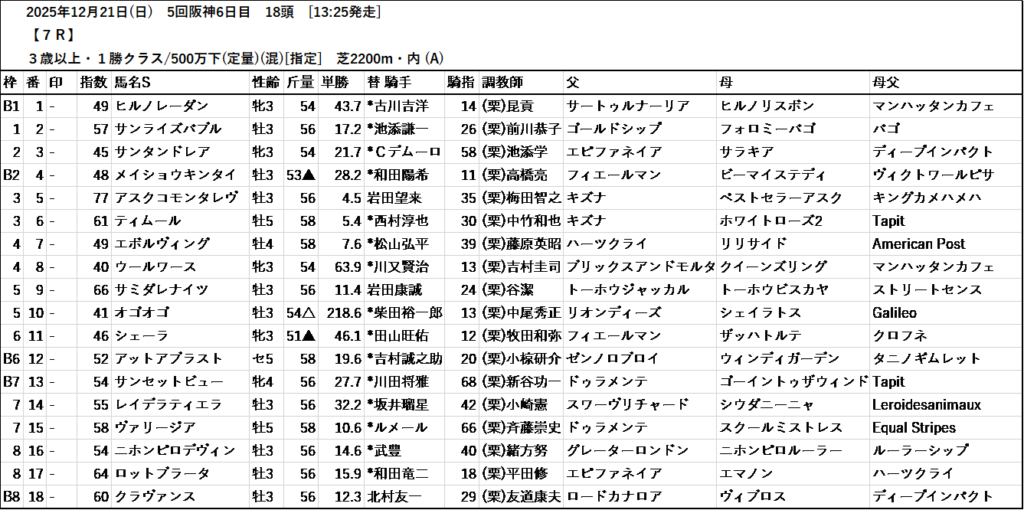 本日のテッパン馬は 2R・7R・10R・12R です。