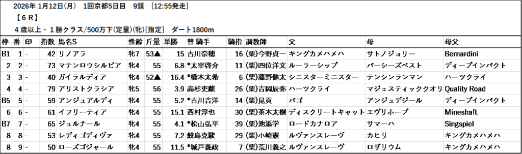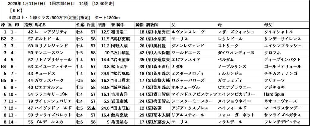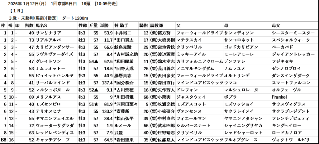本日のテッパン馬は 1R・4R・9R・11R です。