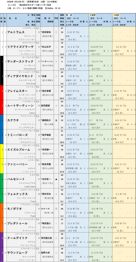 【特別レース予想】