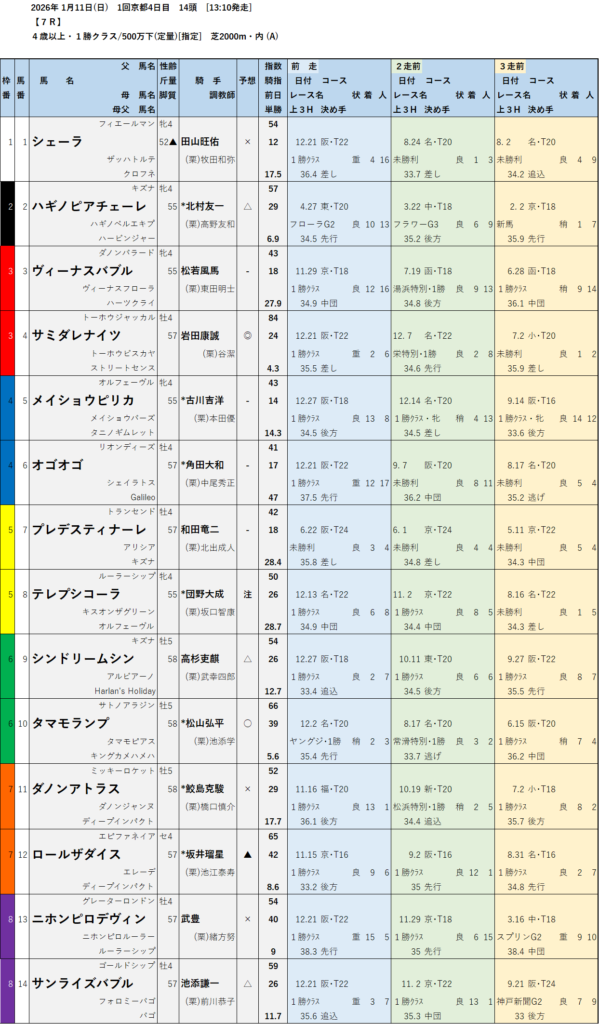 本日のテッパン馬は 2R・7R・11R です。