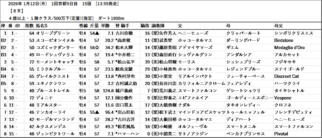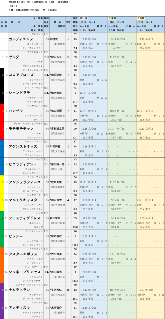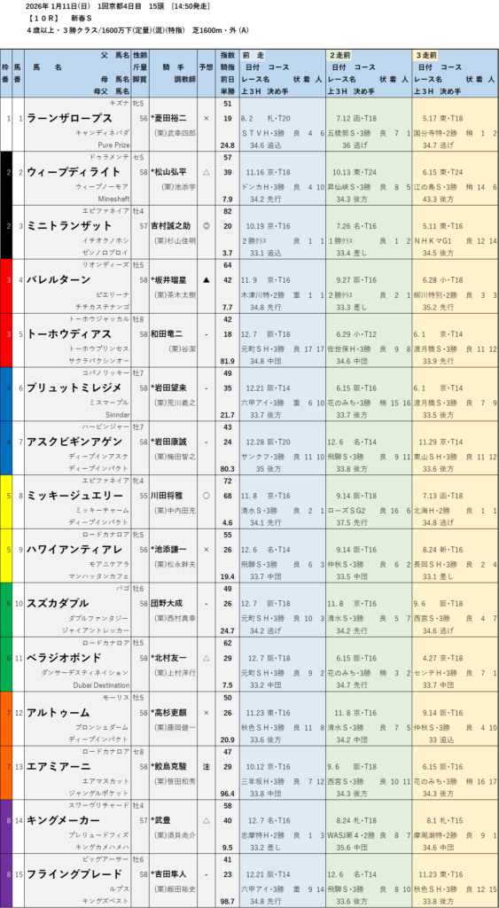 テッパン馬には届かないものの指数の高いレースも予想しています。
