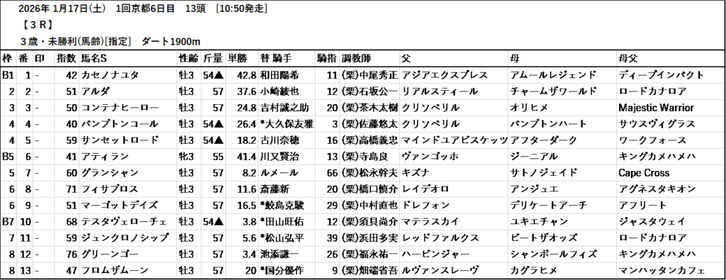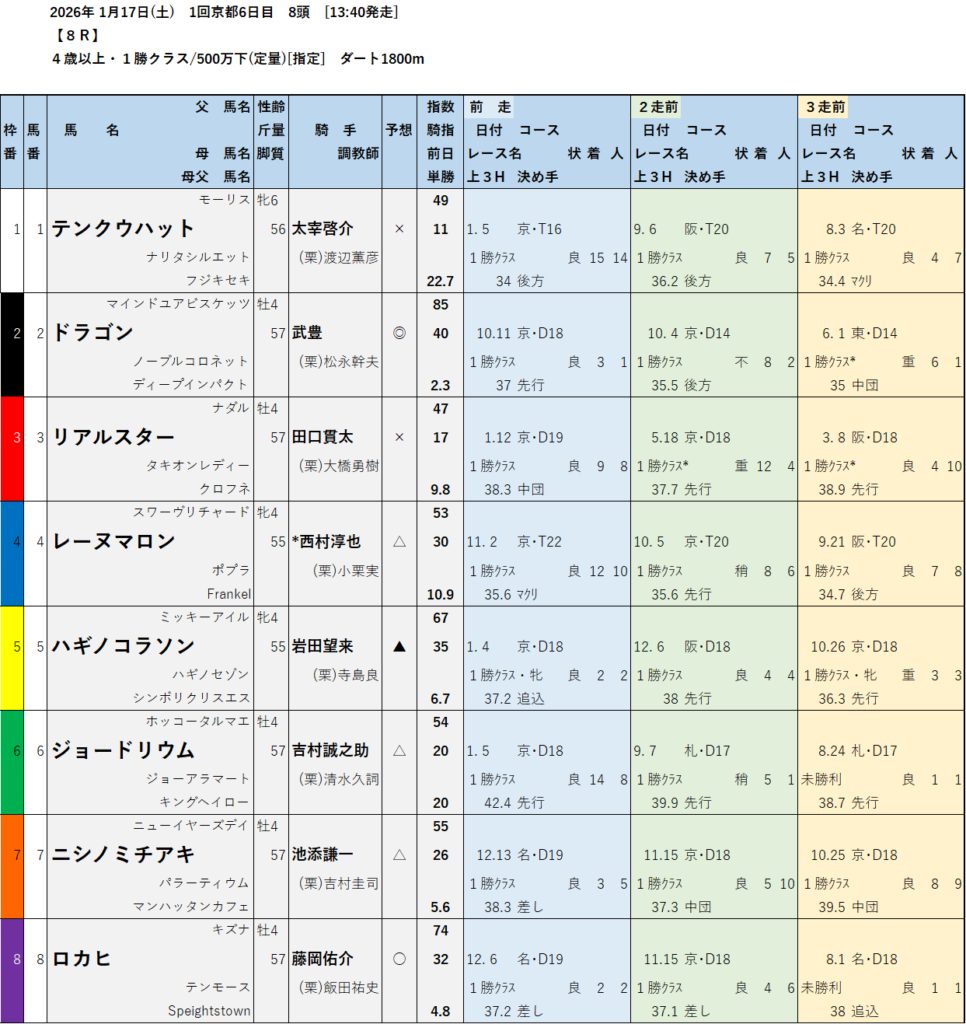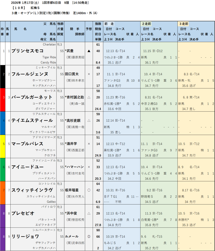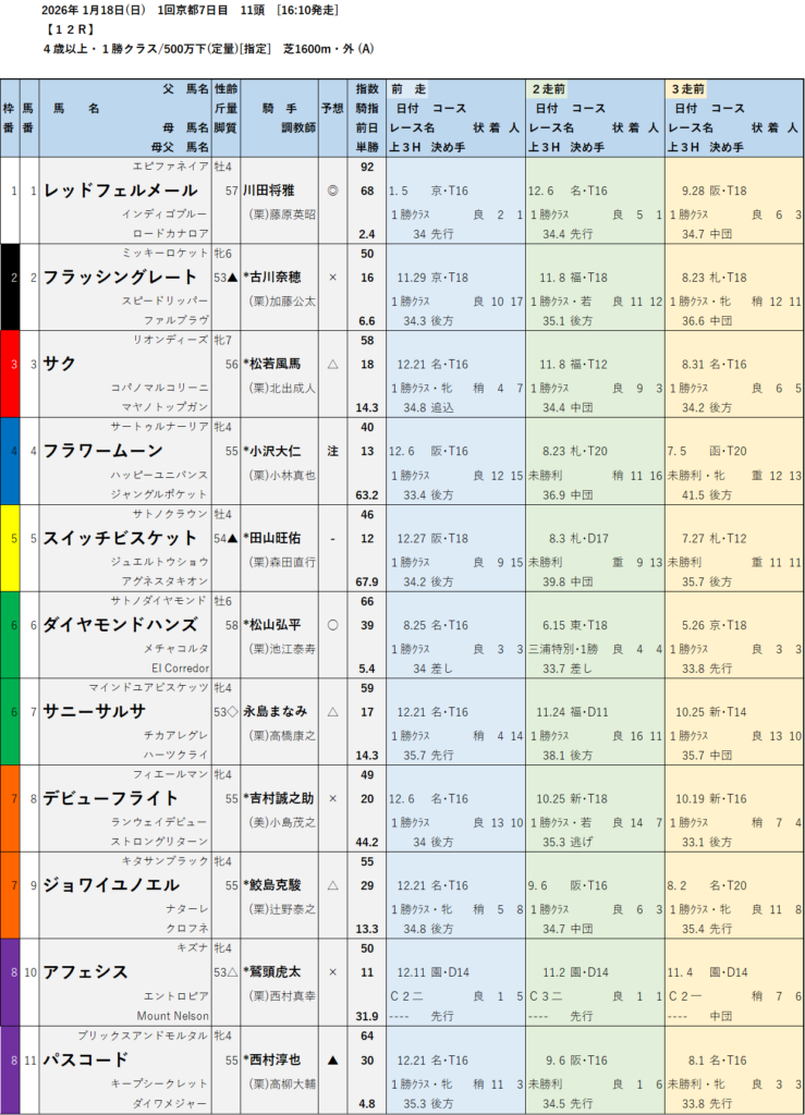 テッパン馬には届かないものの指数の高いレースも予想しています。