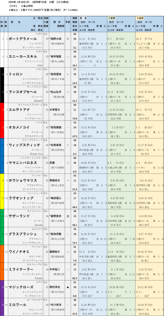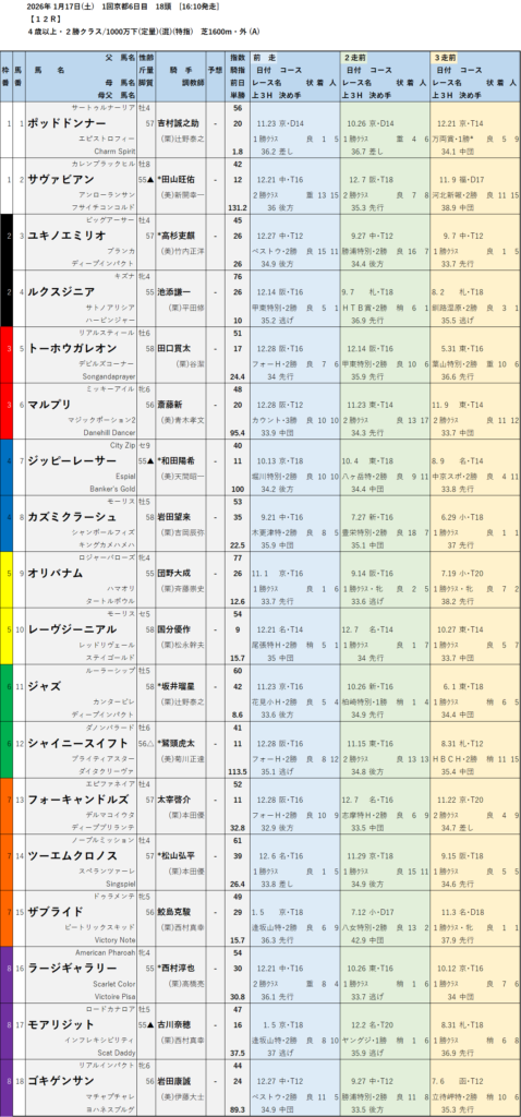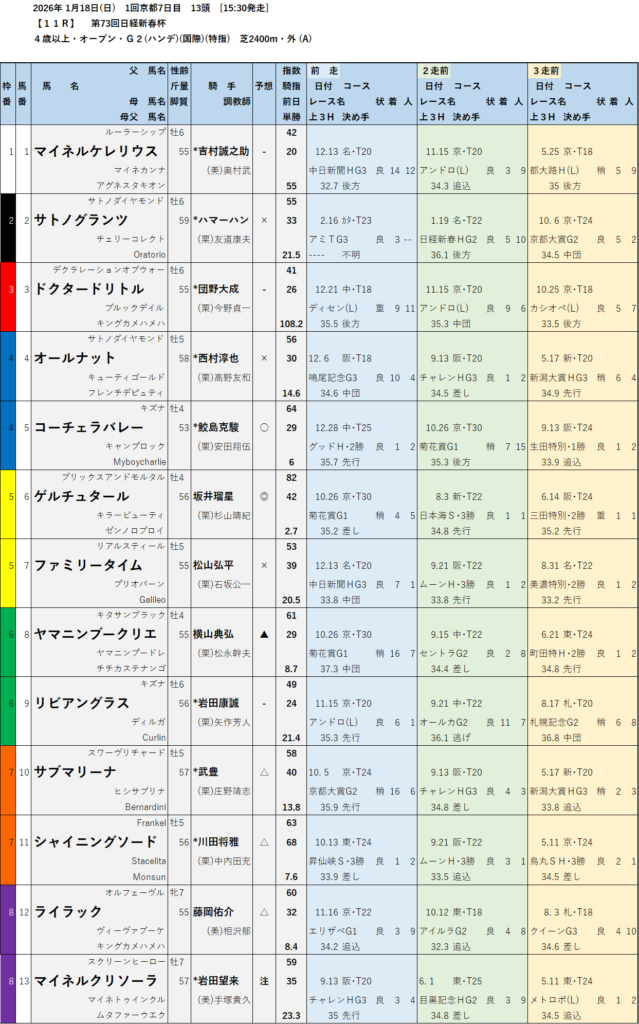 【無料中央競馬予想】2026年1月17日(土)18日(日) 日経新春杯GⅡ