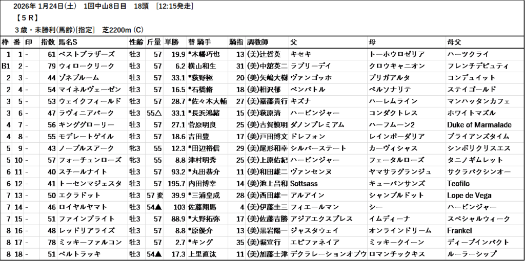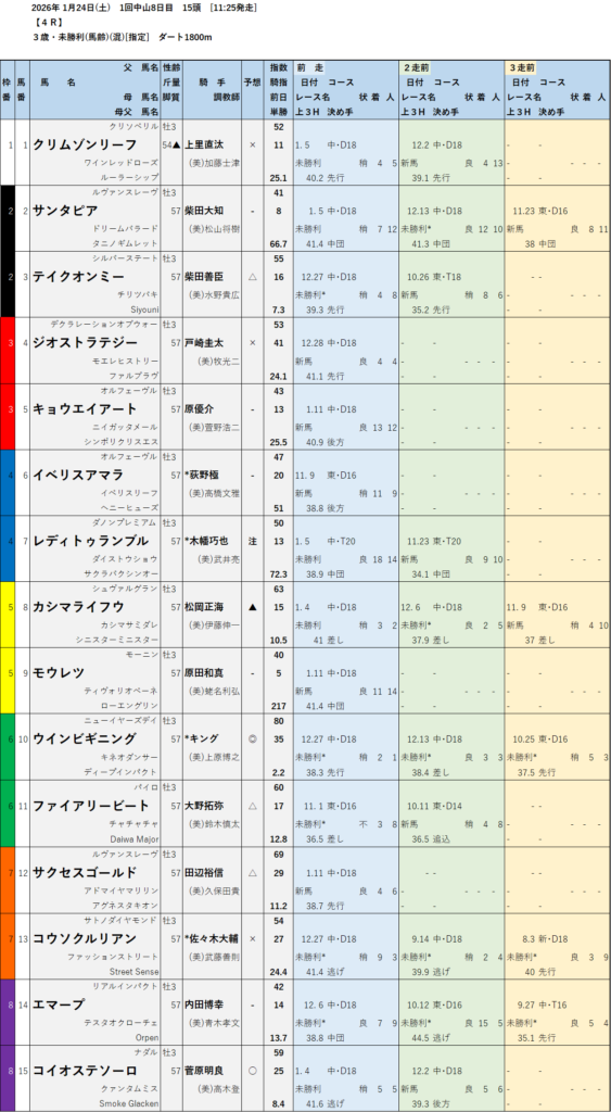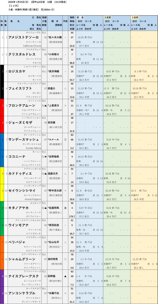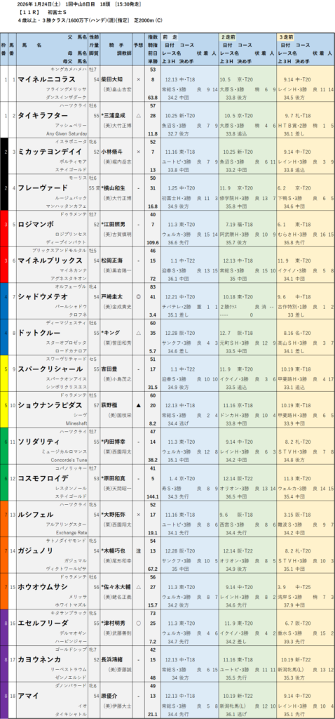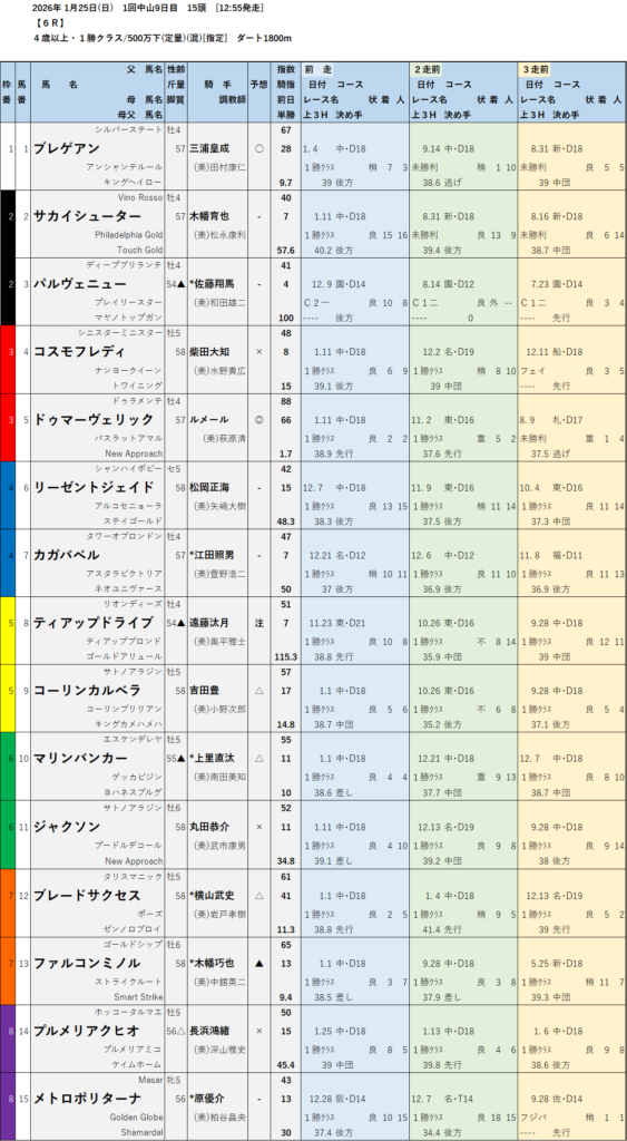 テッパン馬には届かないものの指数の高いレースも予想しています。