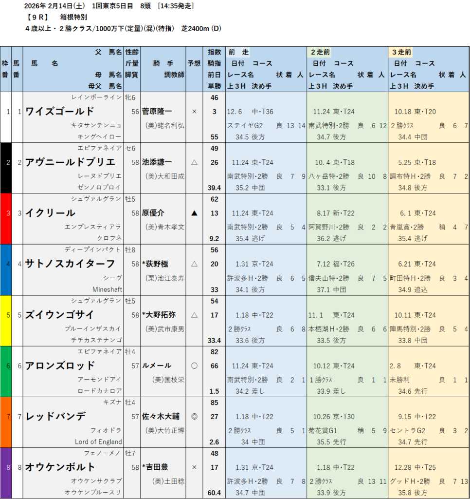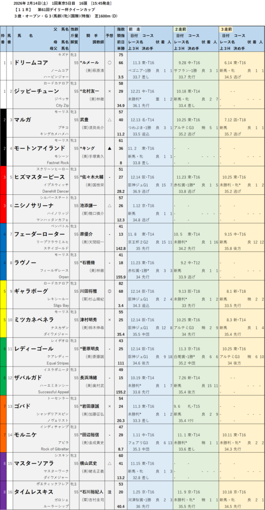 尚、以下の予想はテッパンレースの場合赤字で表記しています。