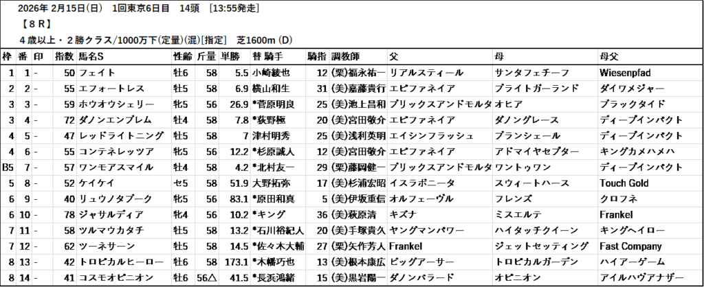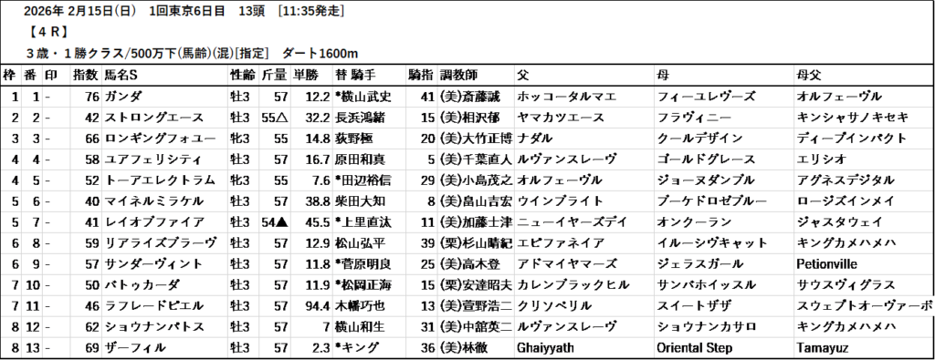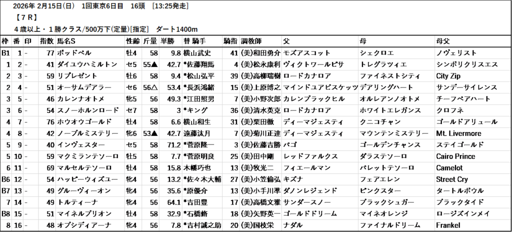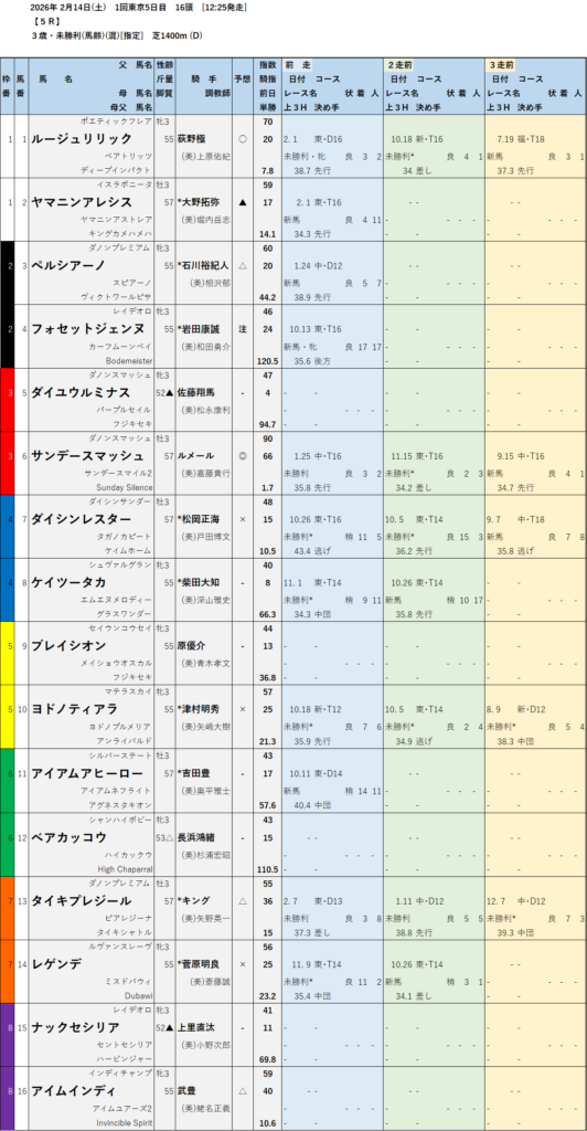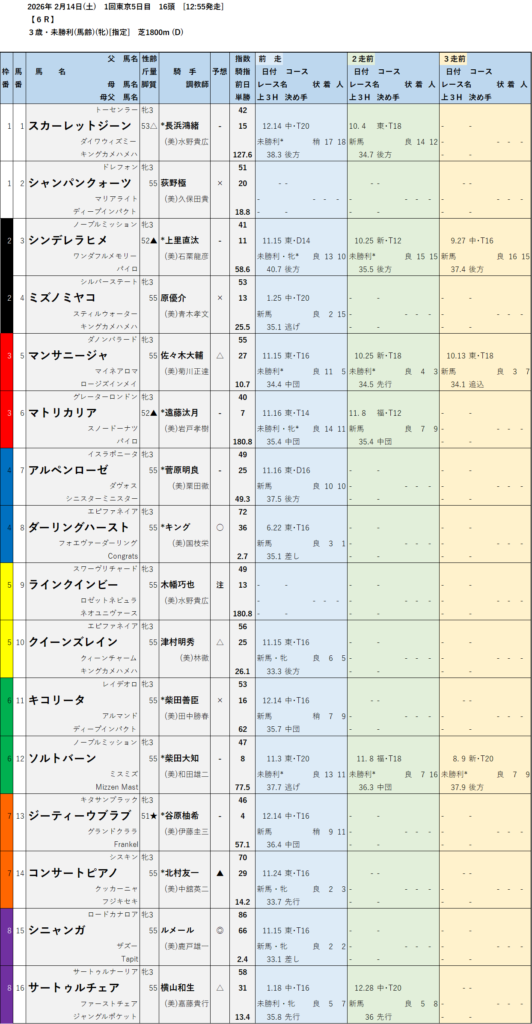 本日のテッパン馬は 5R・6R・9R・10R です。
