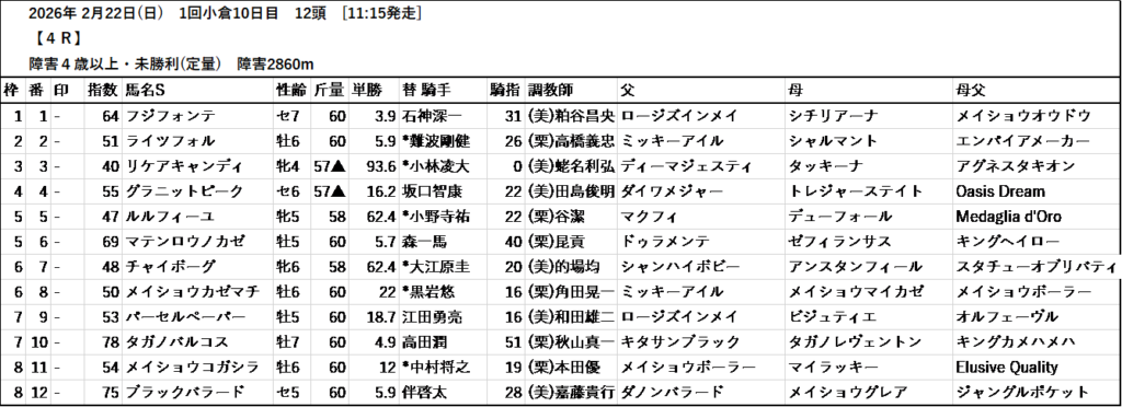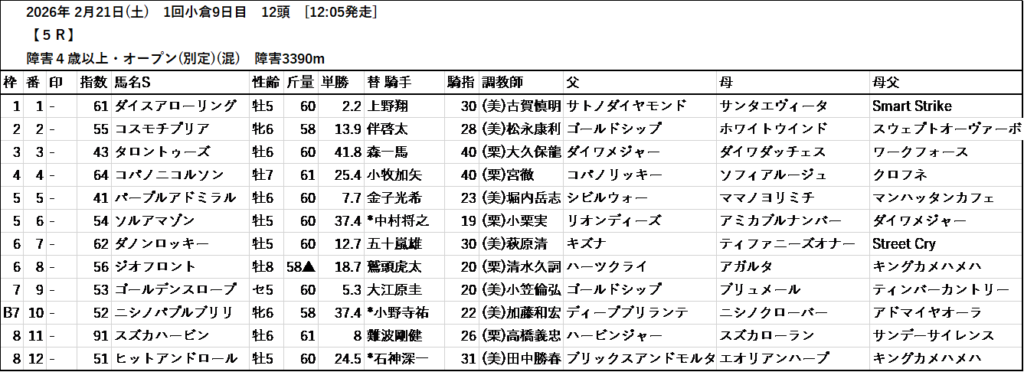 本日のテッパン馬は 1R・7R・9R・12R です。