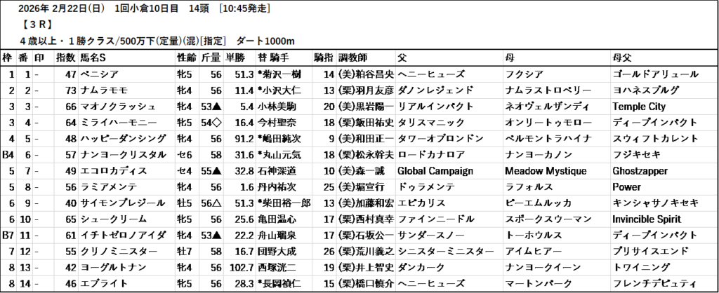 本日のテッパン馬は 2R・7R・10R です。