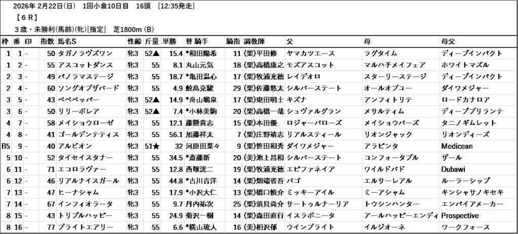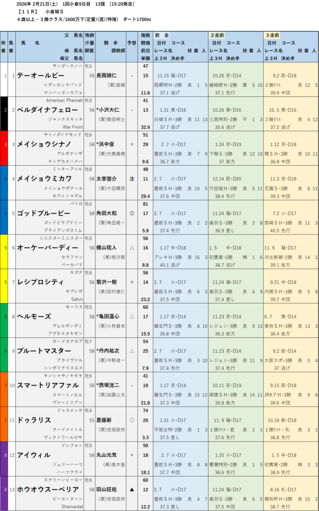 尚、以下の予想はテッパンレースの場合赤字で表記しています。