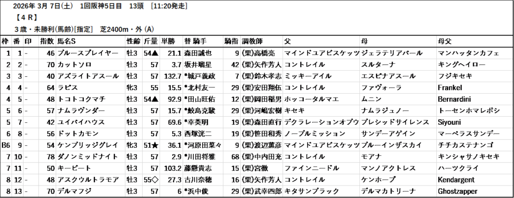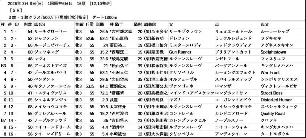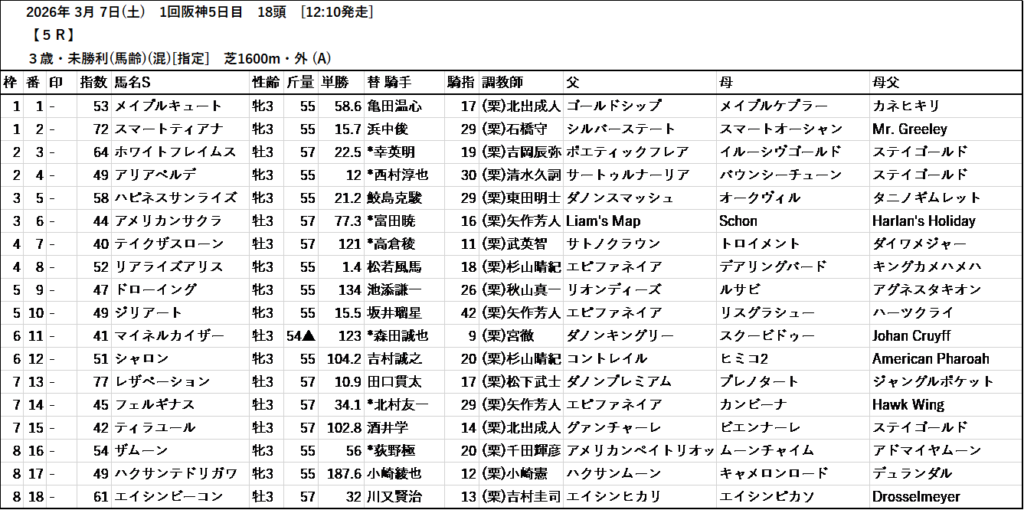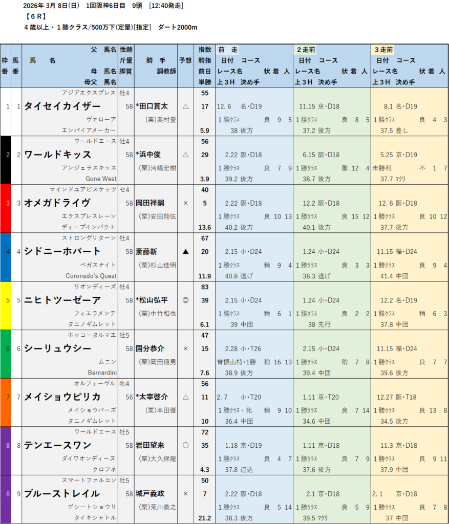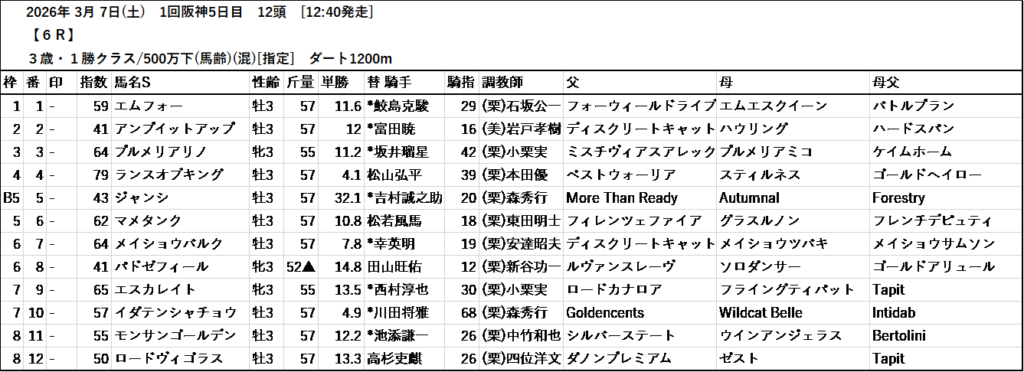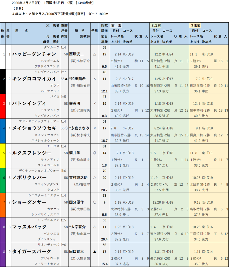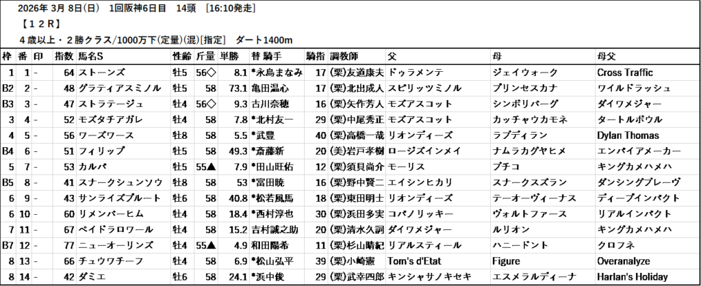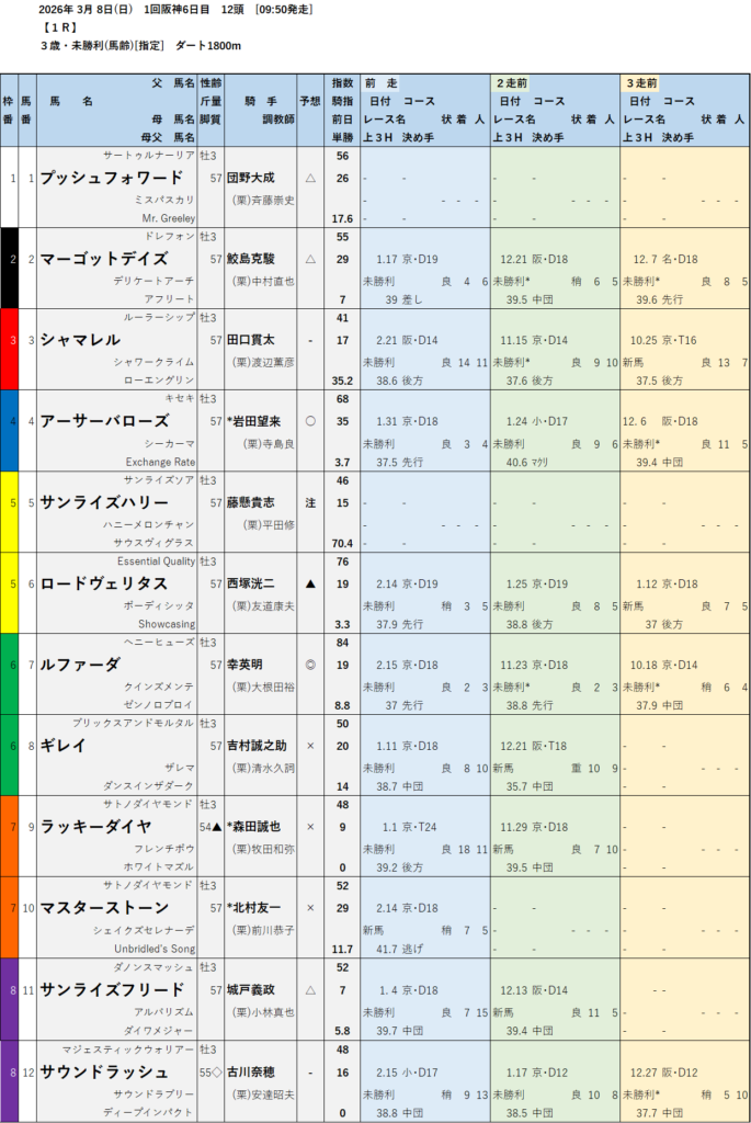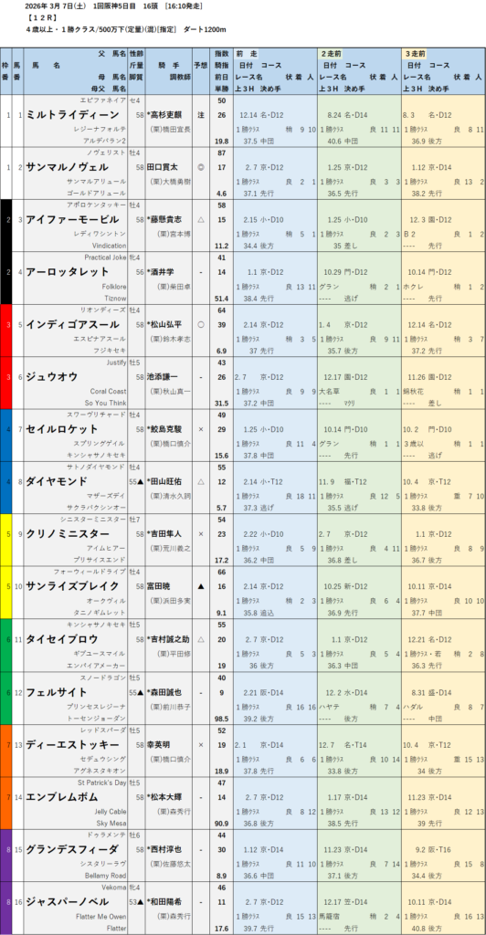 本日のテッパン馬は 1R・2R・7R・8R・12R です。
