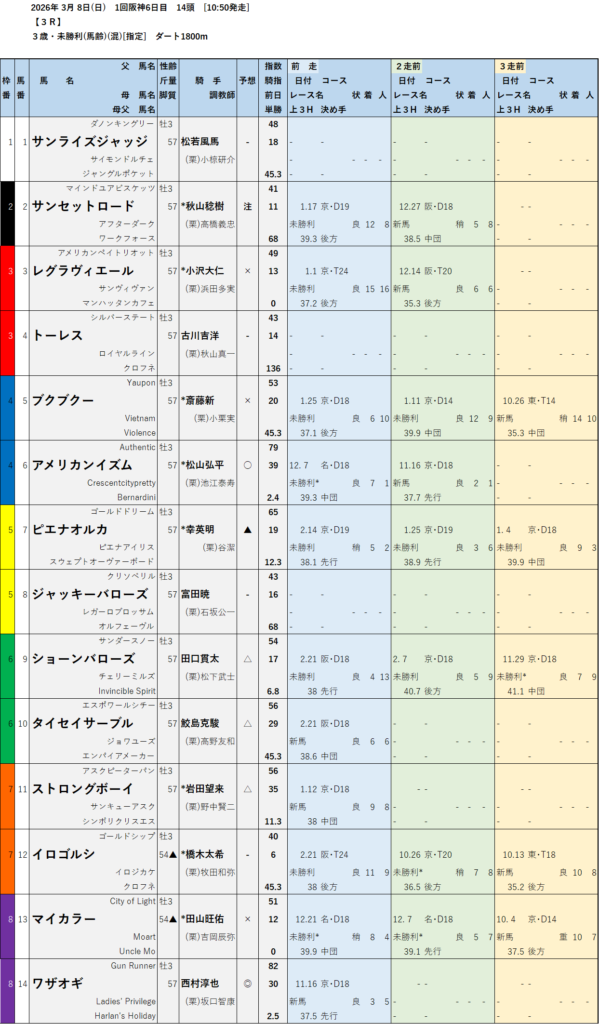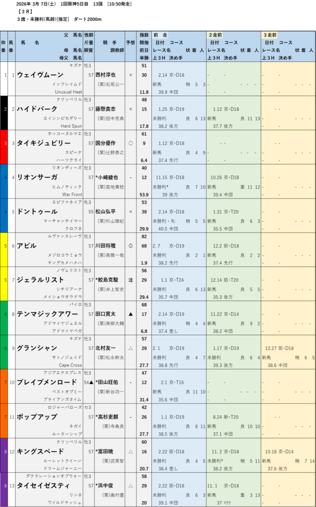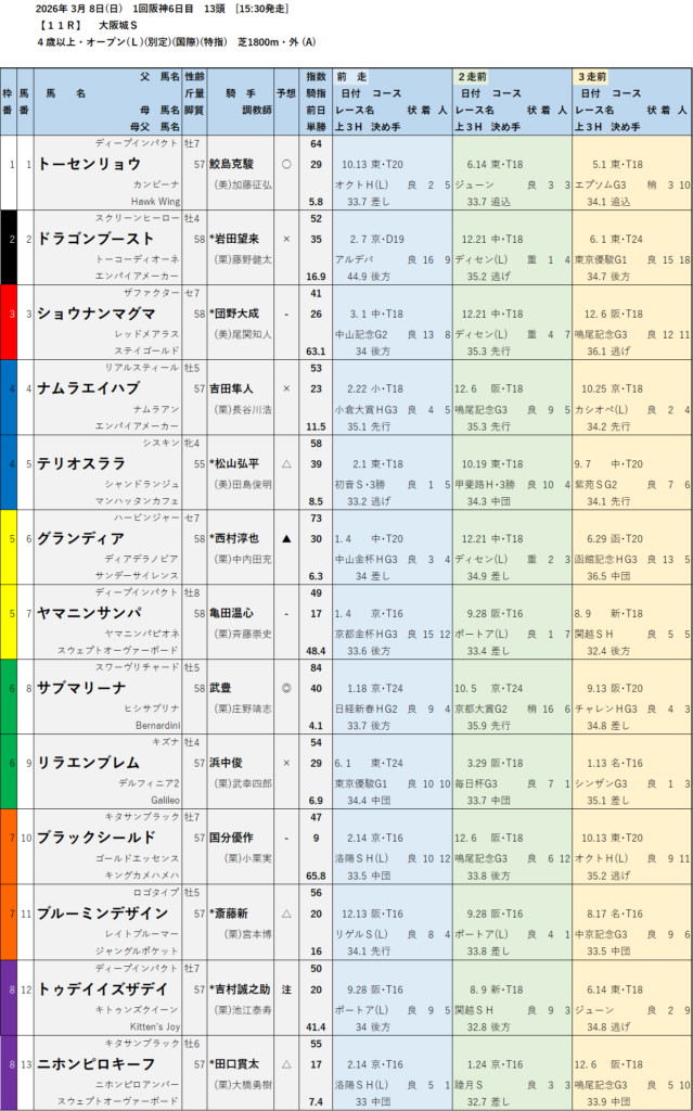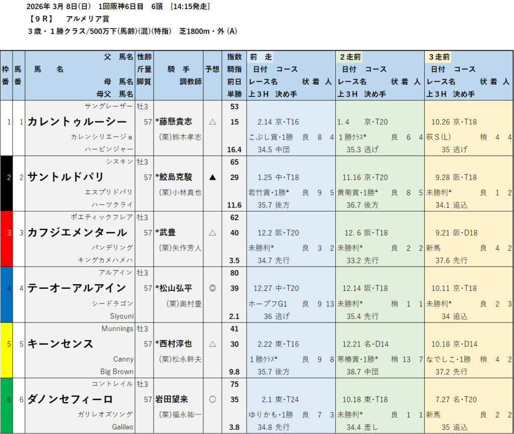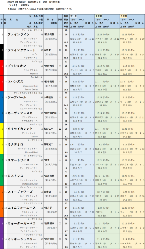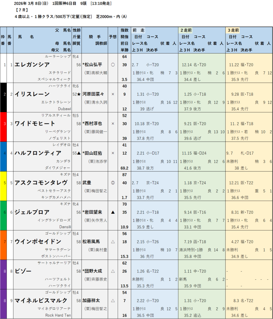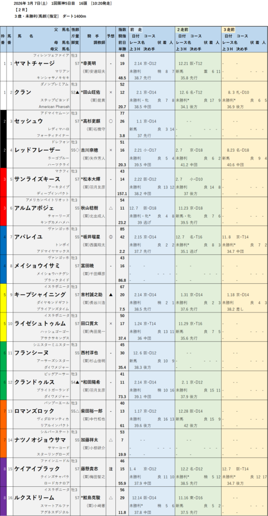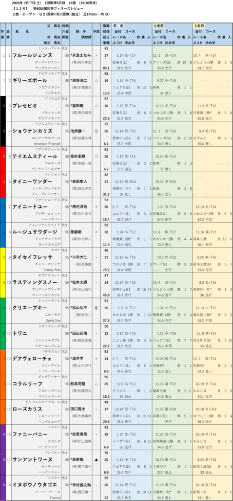 【無料中央競馬予想】2026年3月7日(土)8日(日)フィリーズレビューGⅡ