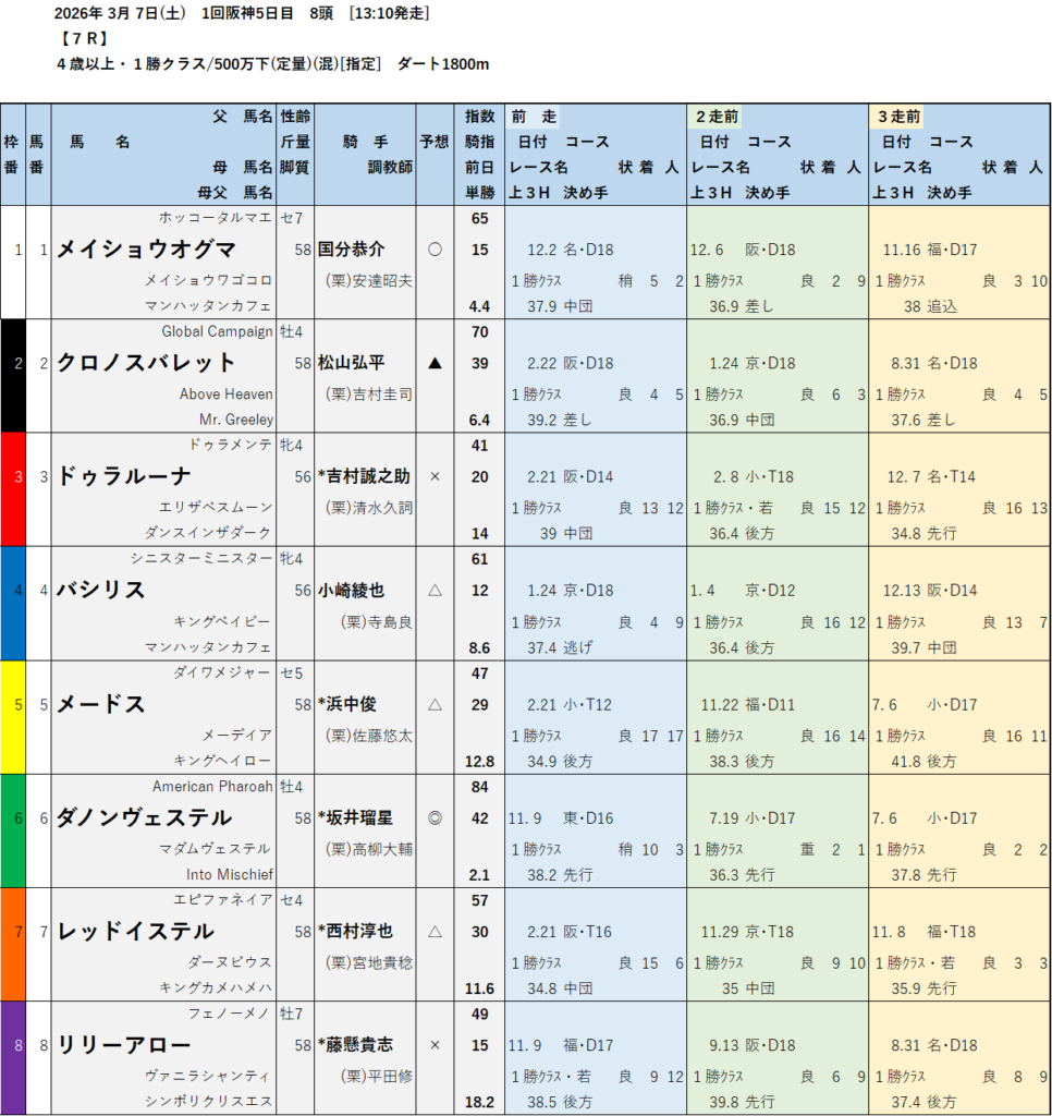 本日のテッパン馬は 1R・2R・6R・7R・10R・11R です。