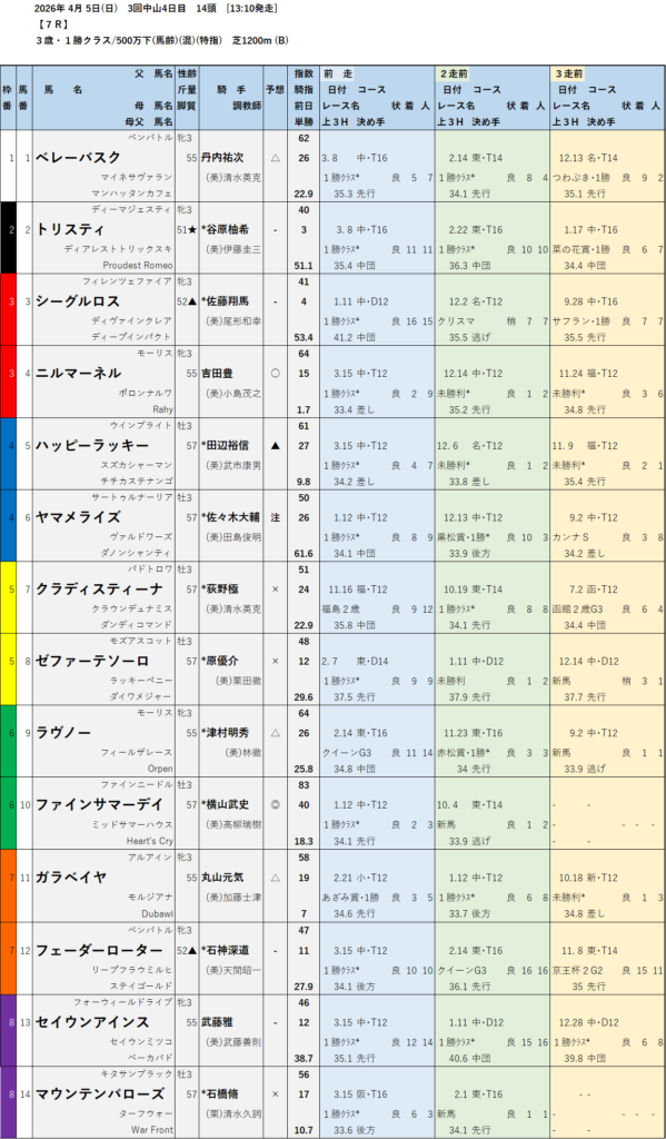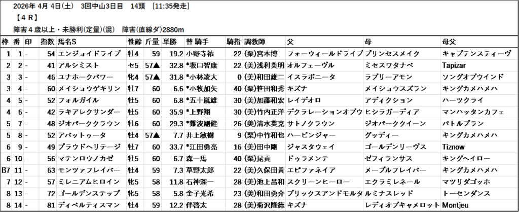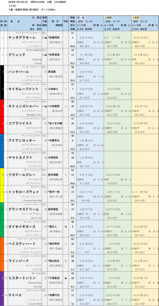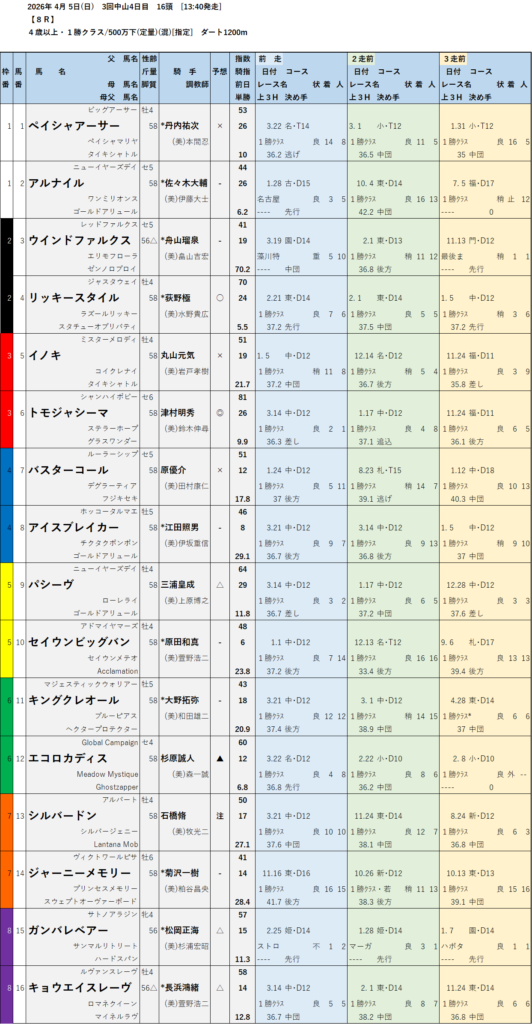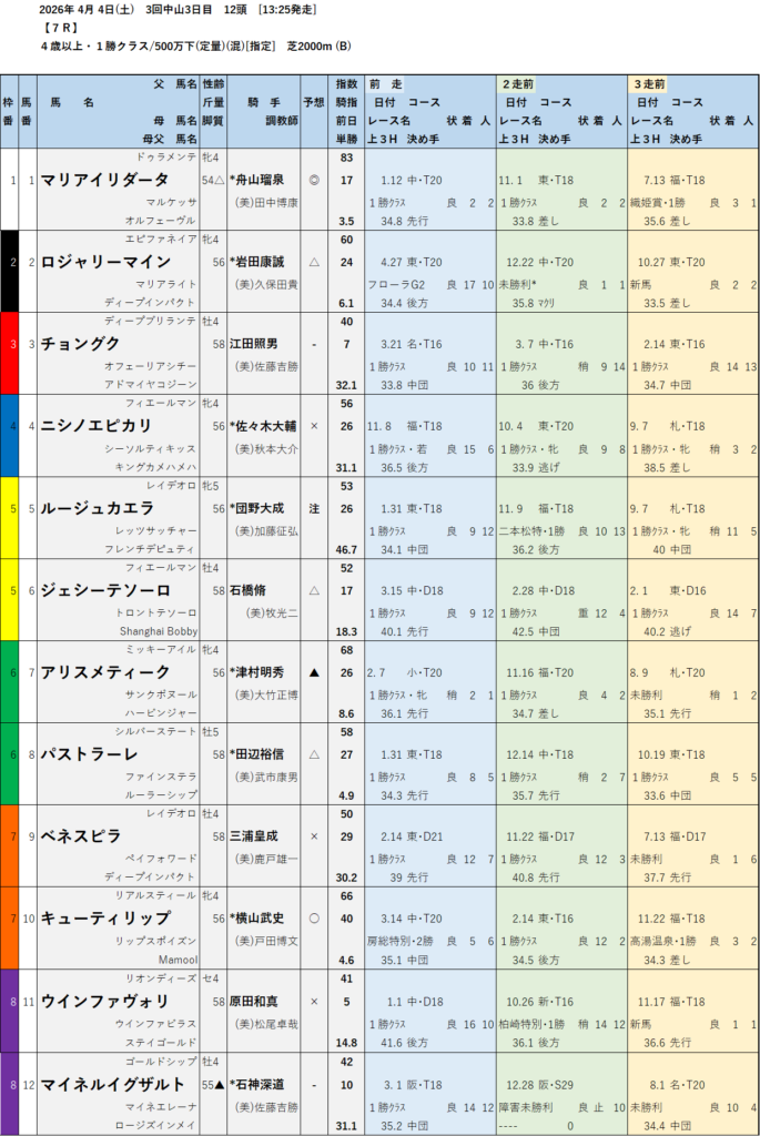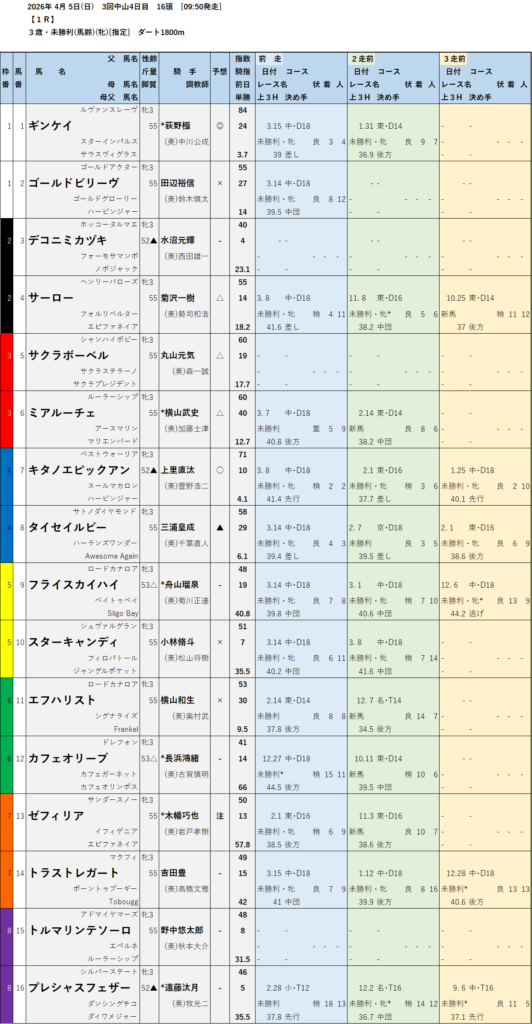 本日のテッパン馬は 1R・2R・3R・5R・7R・9R です。