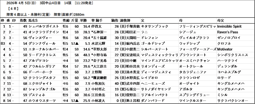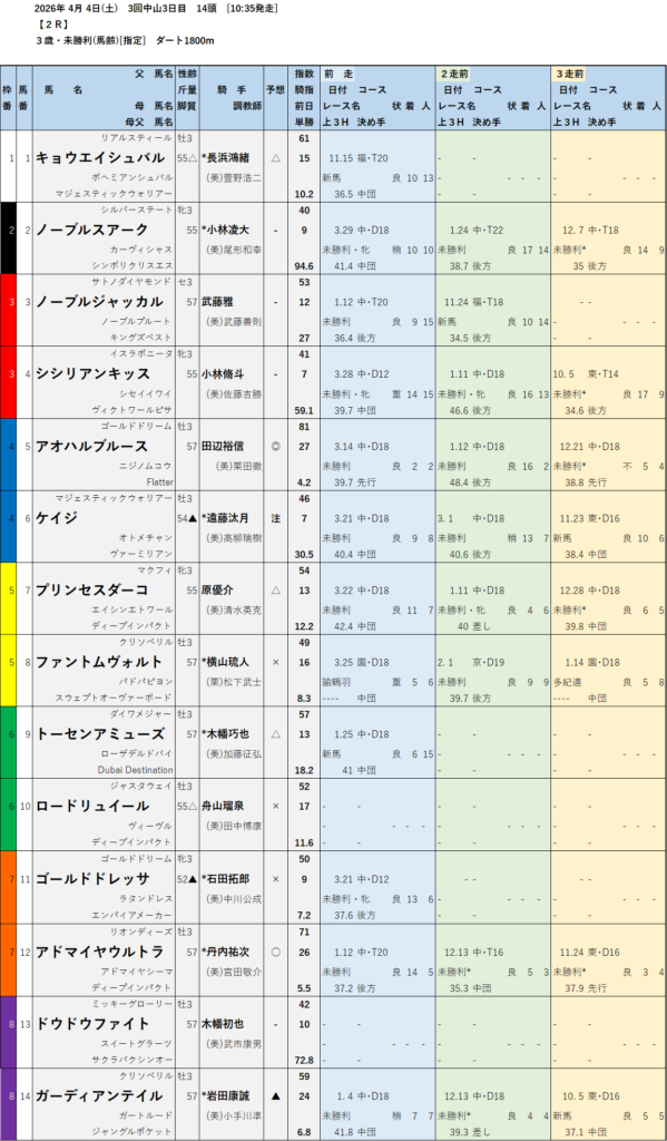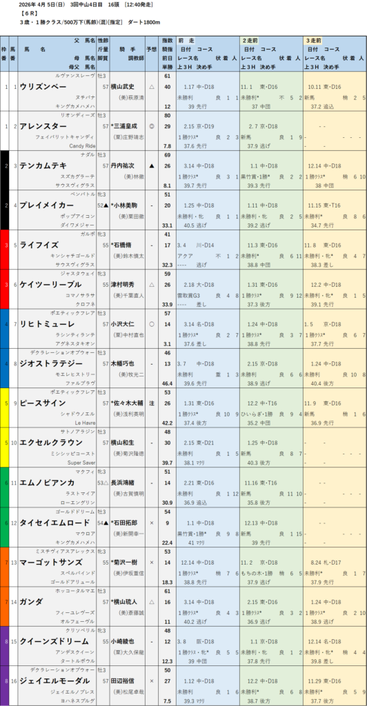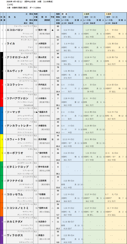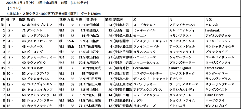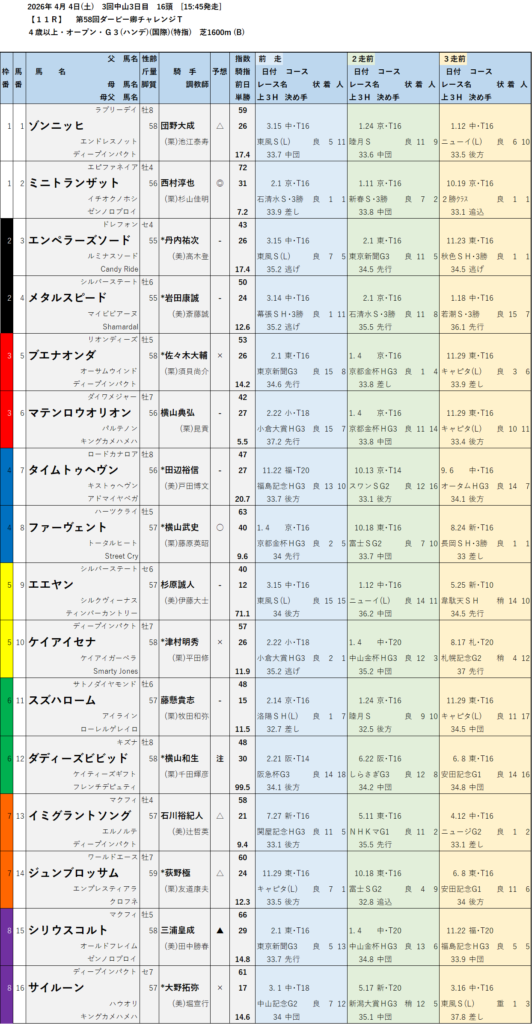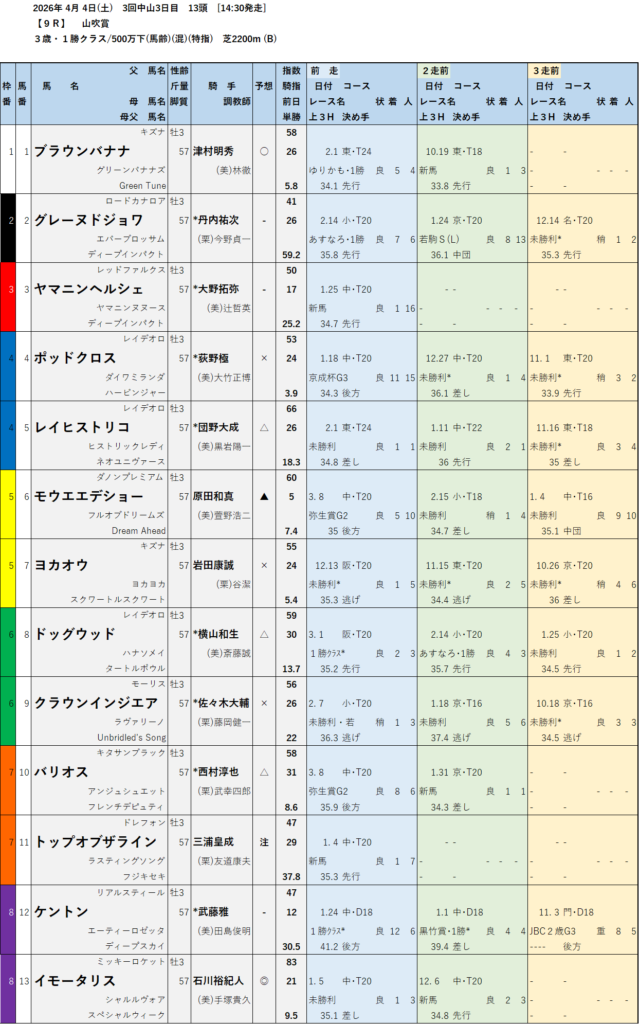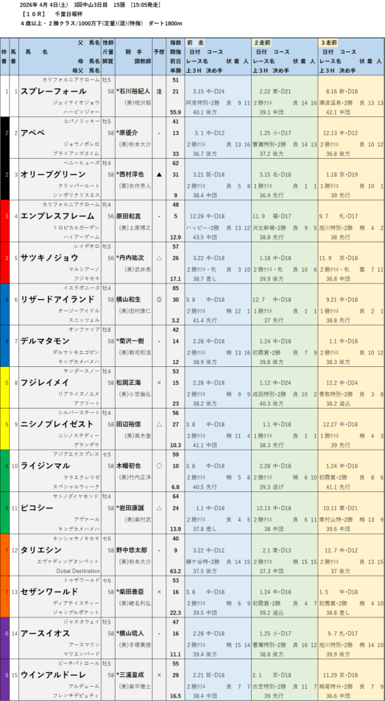 テッパン馬には届かないものの指数の高いレースも予想しています。