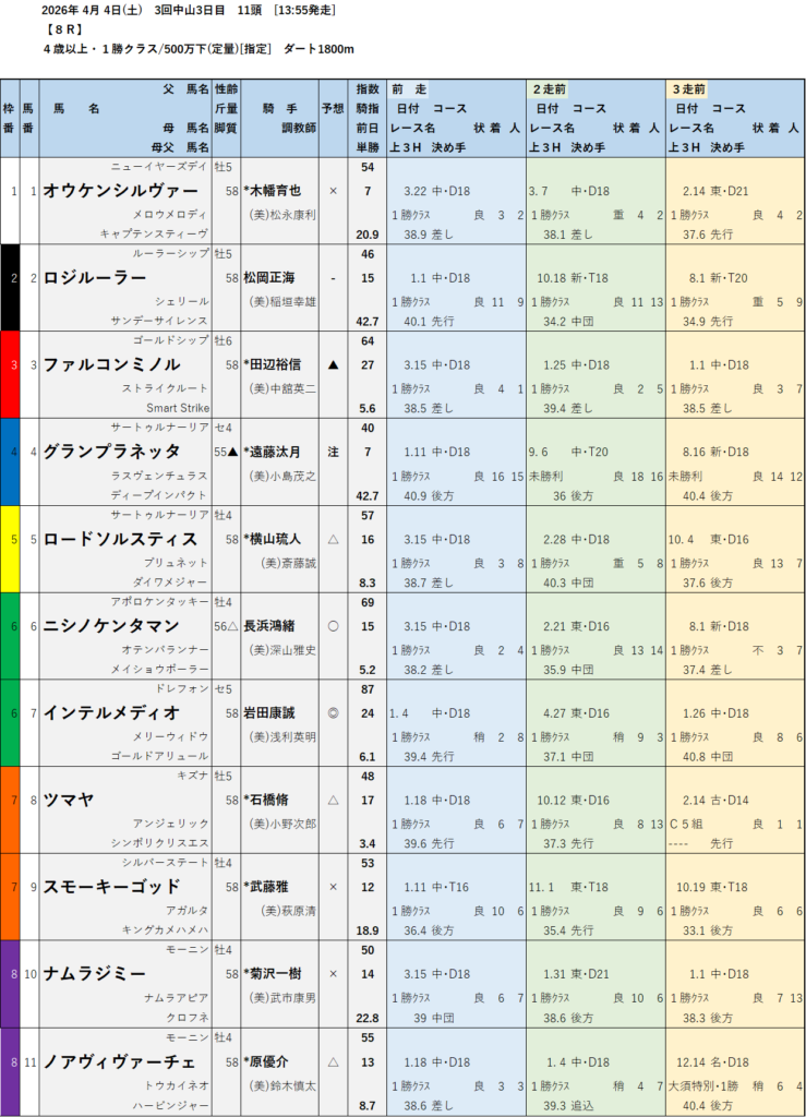 本日のテッパン馬は 1R・3R・7R・8R・9R・10R です。