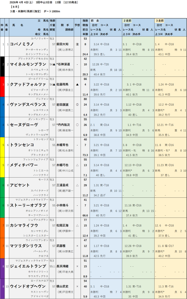 尚、以下の予想はテッパンレースの場合赤字で表記しています。
