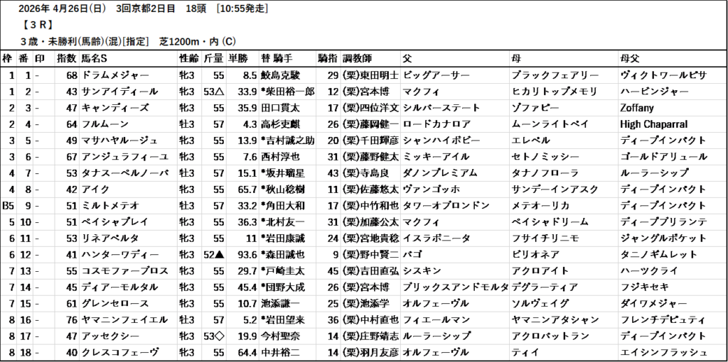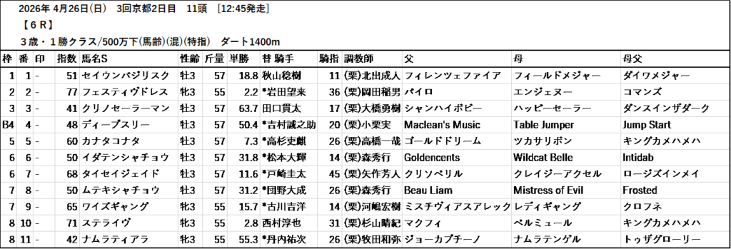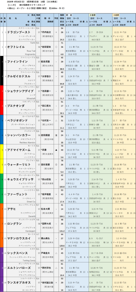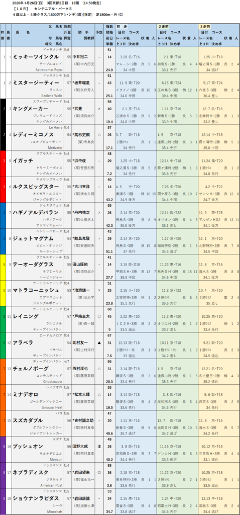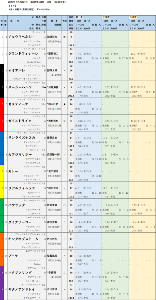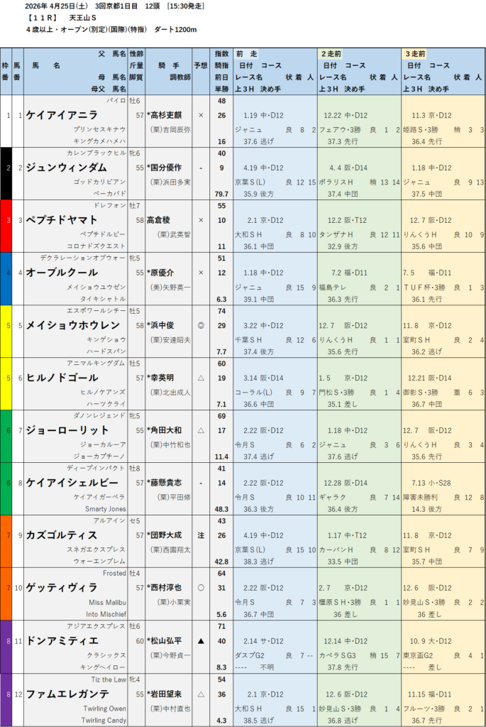 テッパン馬には届かないものの指数の高いレースも予想しています。