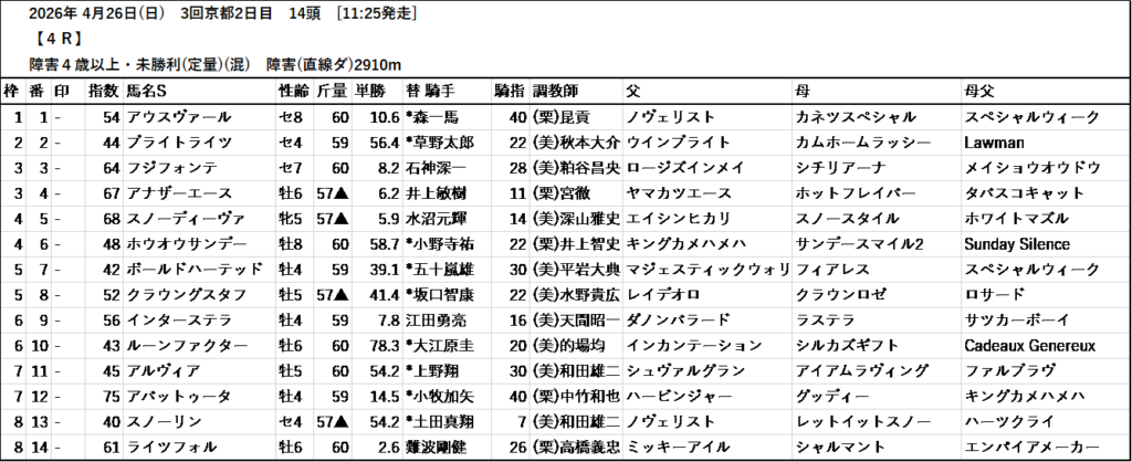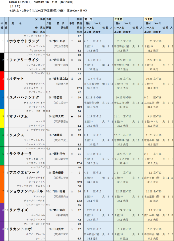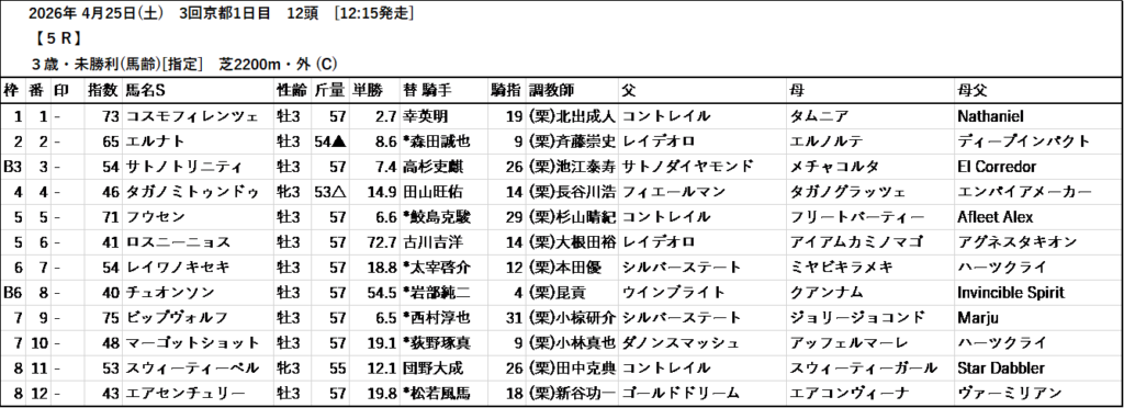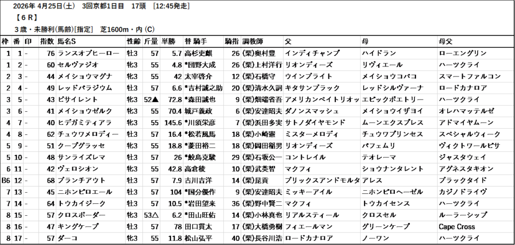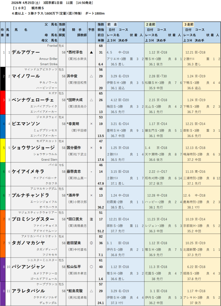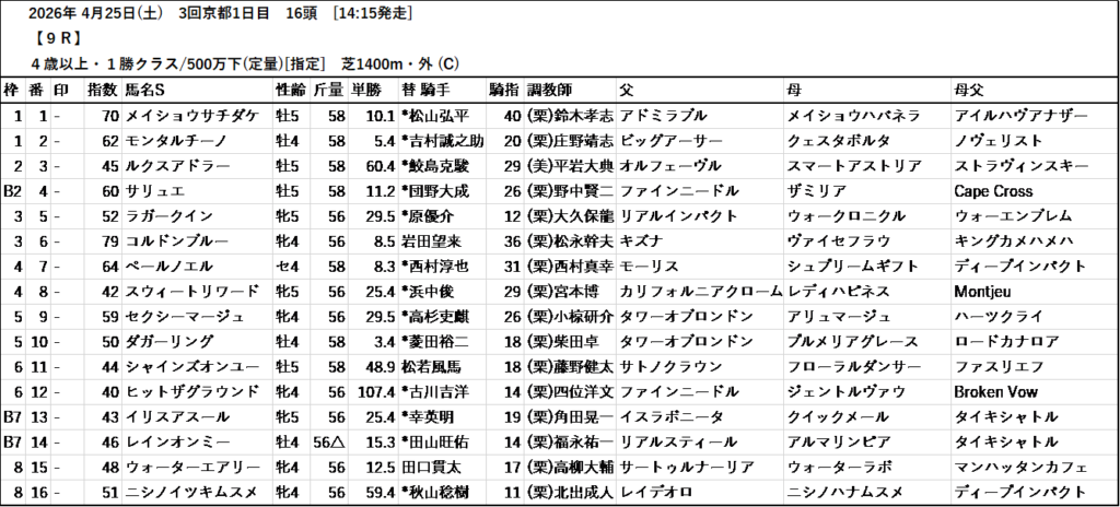 テッパン馬には届かないものの指数の高いレースも予想しています。