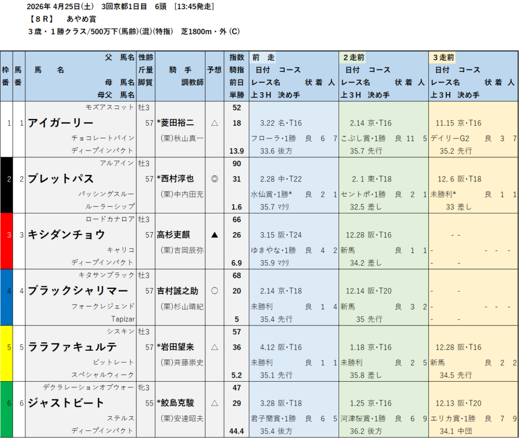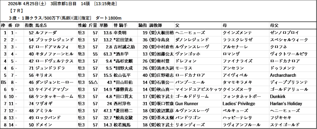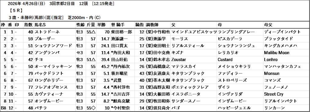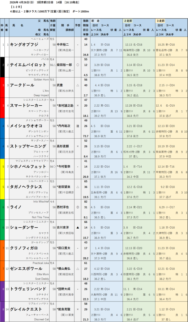 本日のテッパン馬は 1R・8R・12R です。