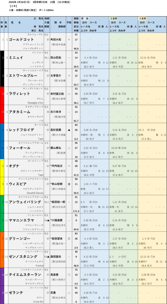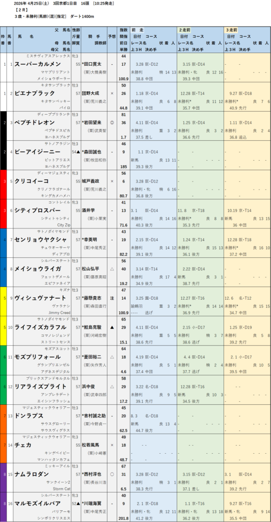本日のテッパン馬は 2R・10R です。