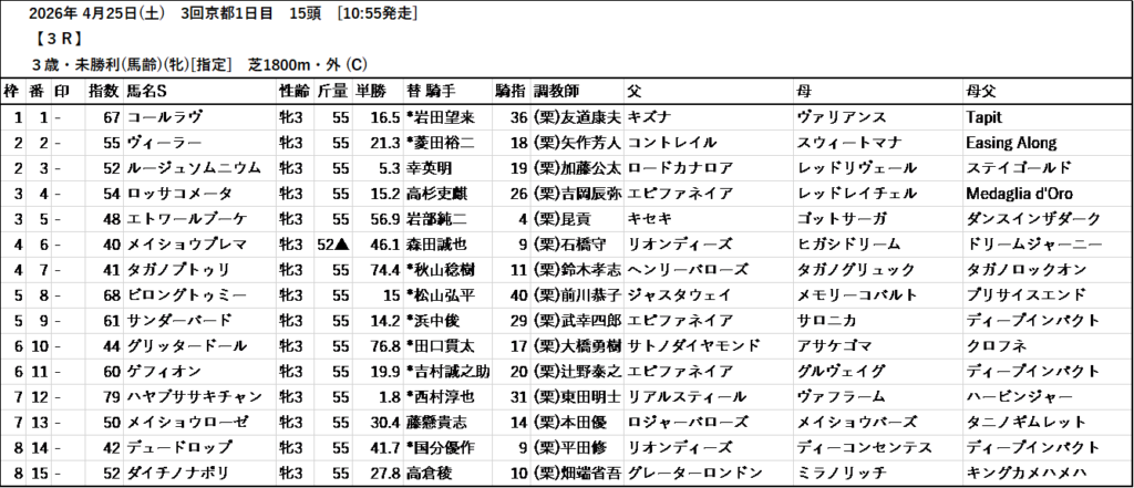 2026年4月25日(土) 3回1日目