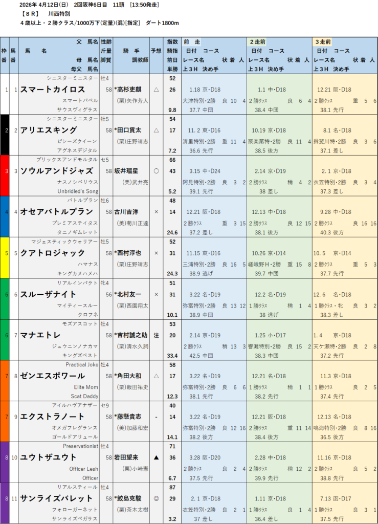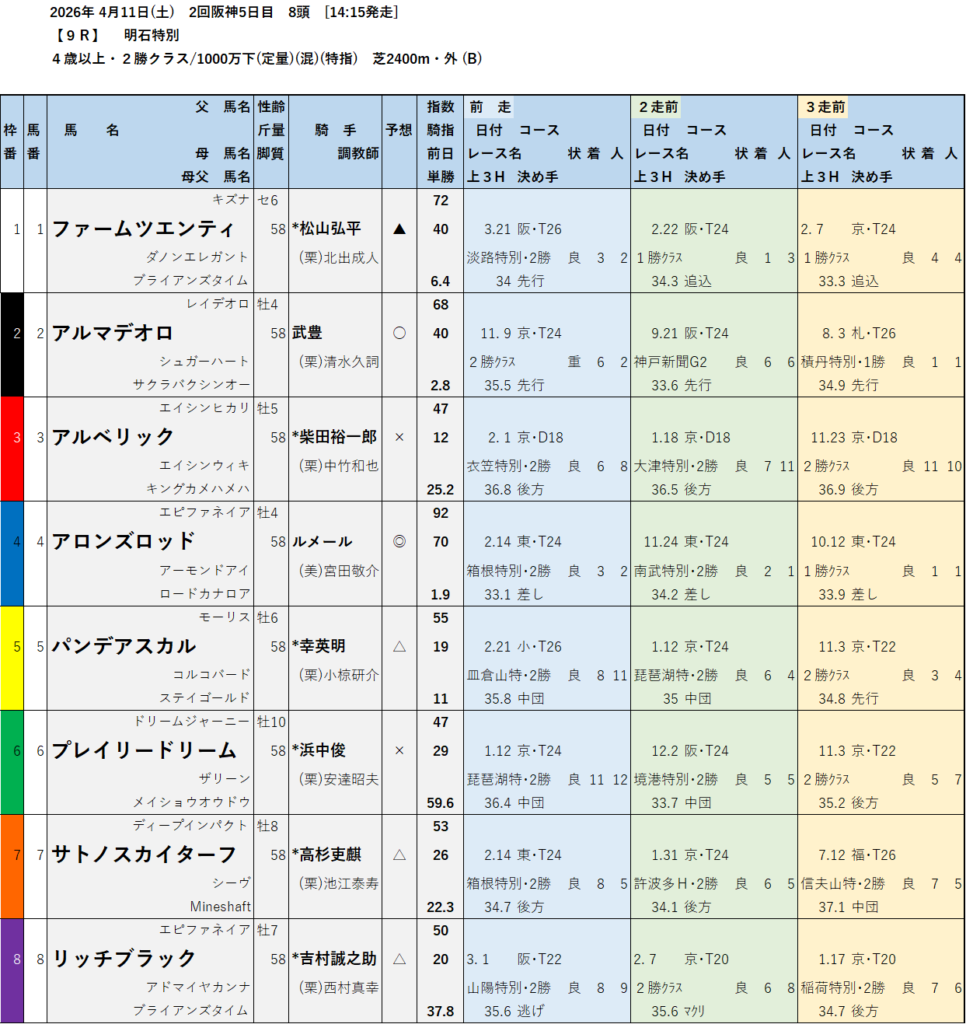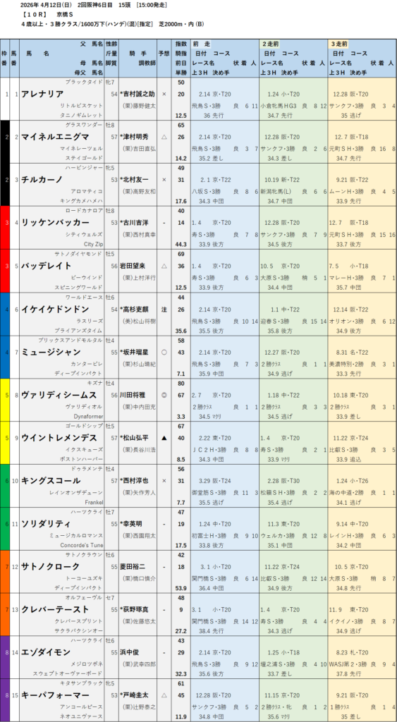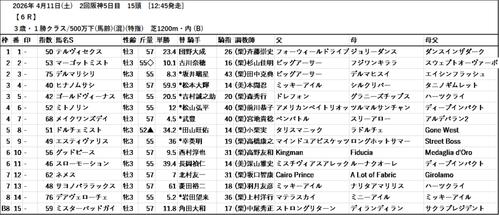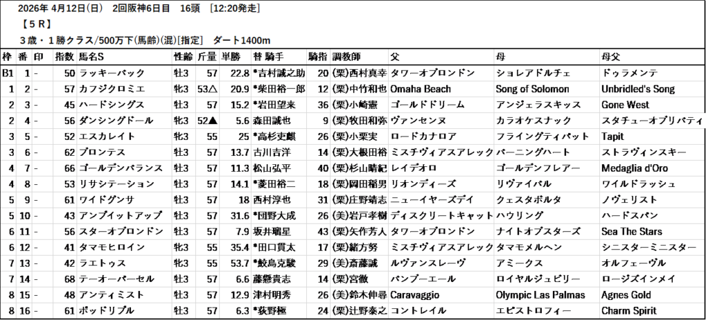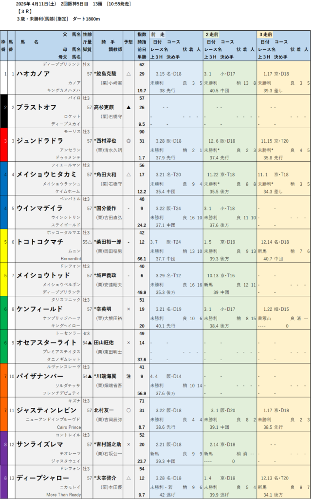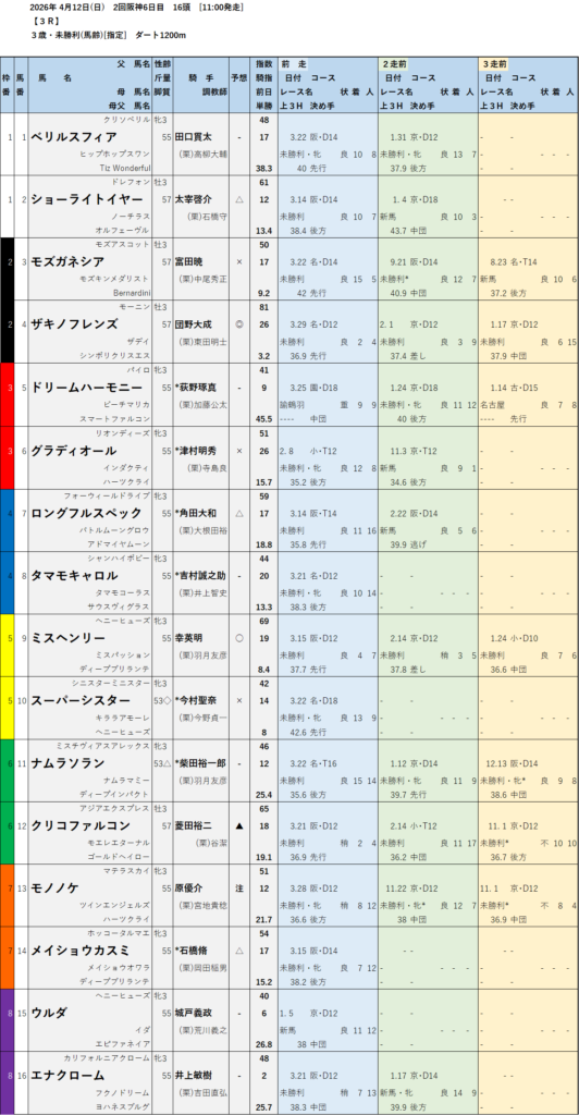 本日のテッパン馬は 3R・8R・9R・10R・12R です。