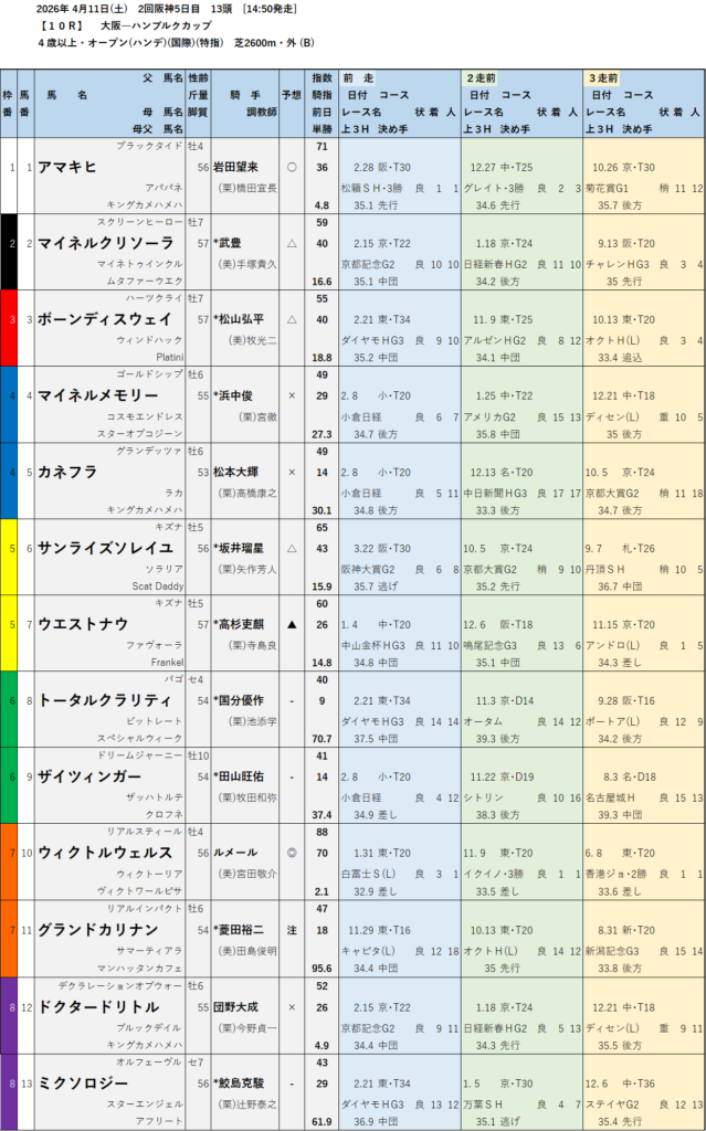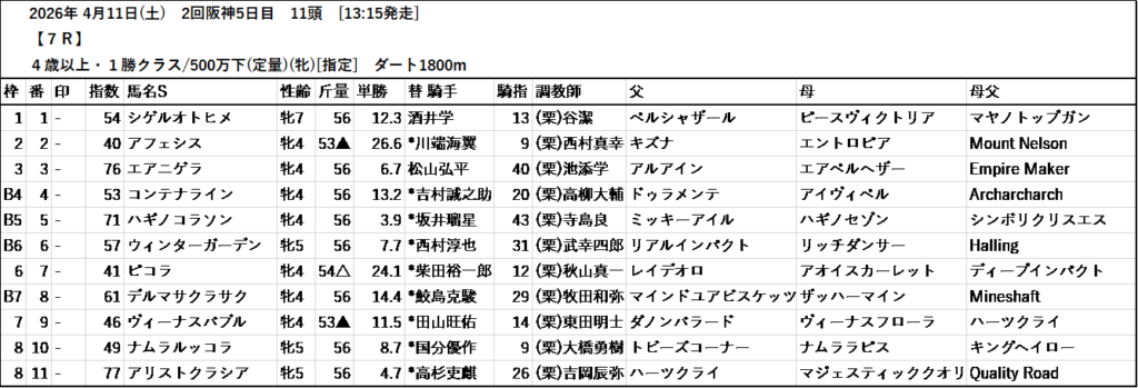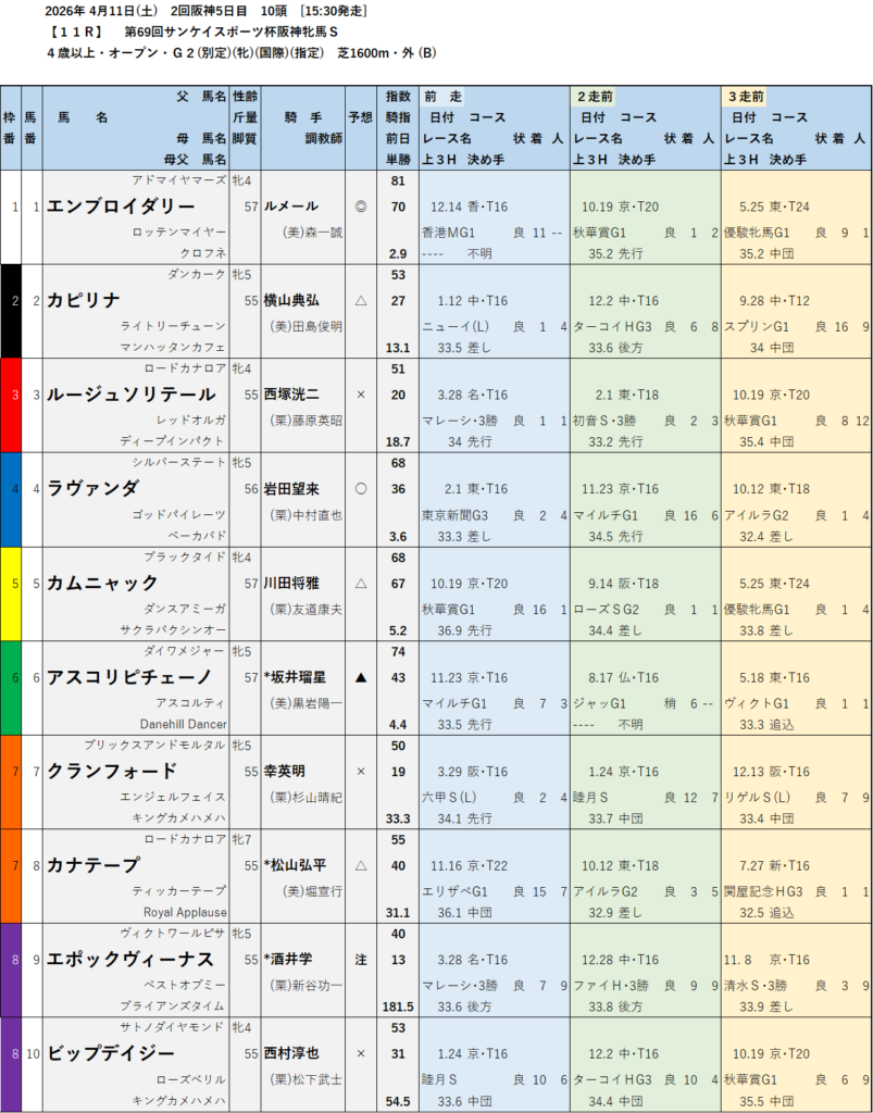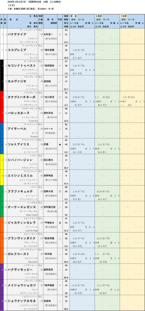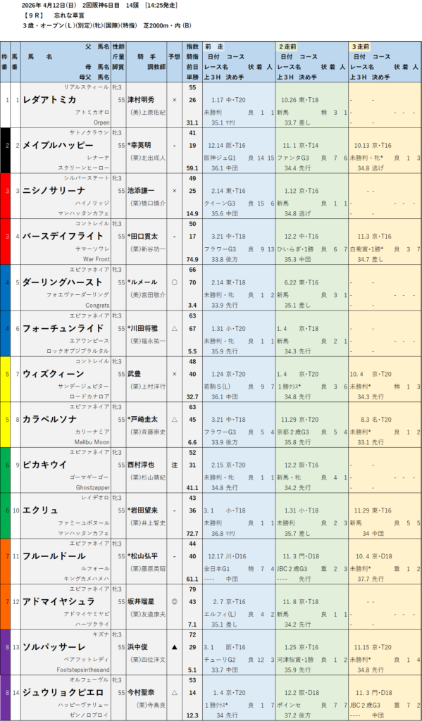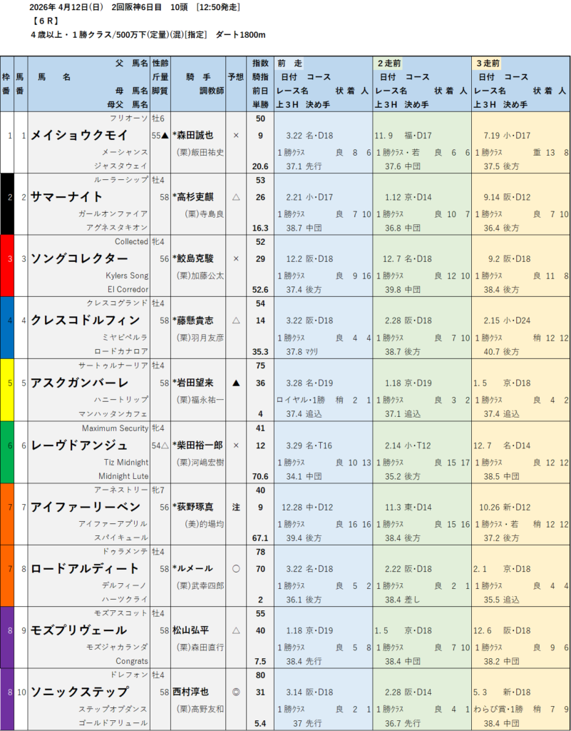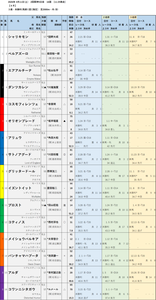 本日のテッパン馬は 3R・8R・9R・10R・12R です。