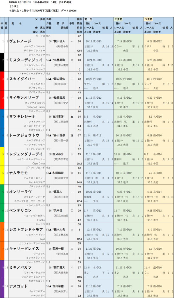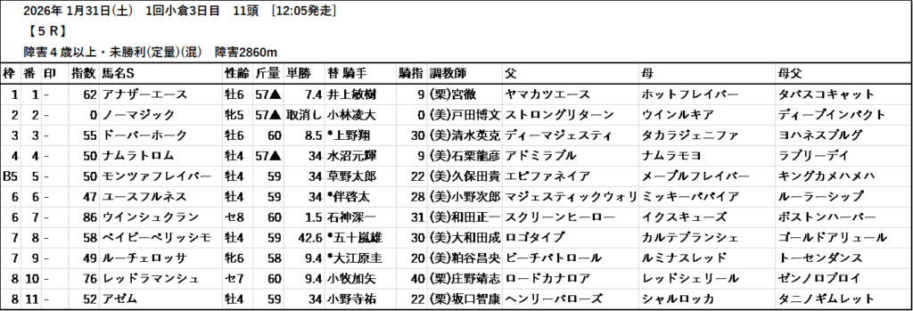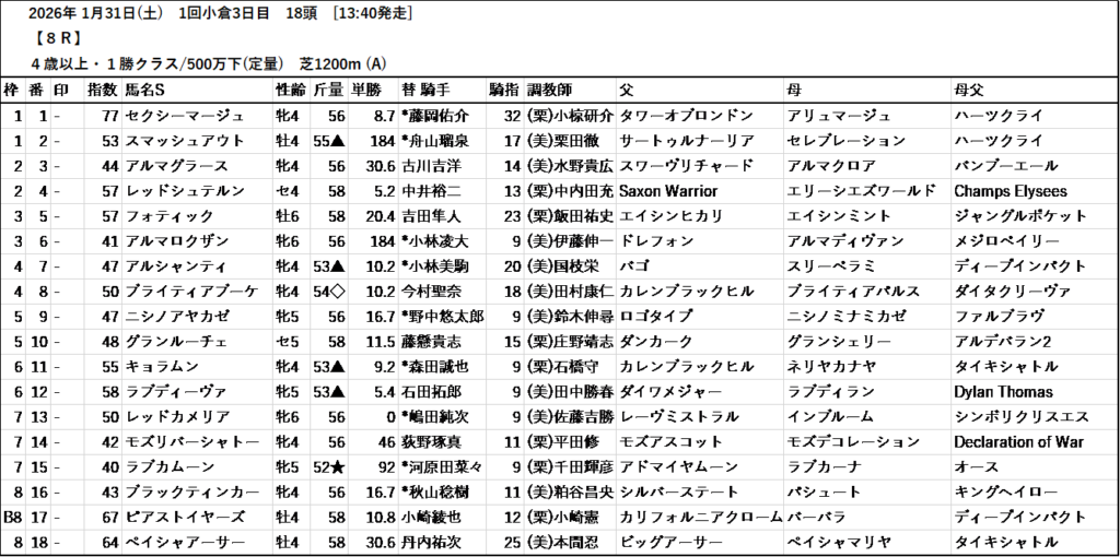 本日のテッパン馬は 5R・8R です。