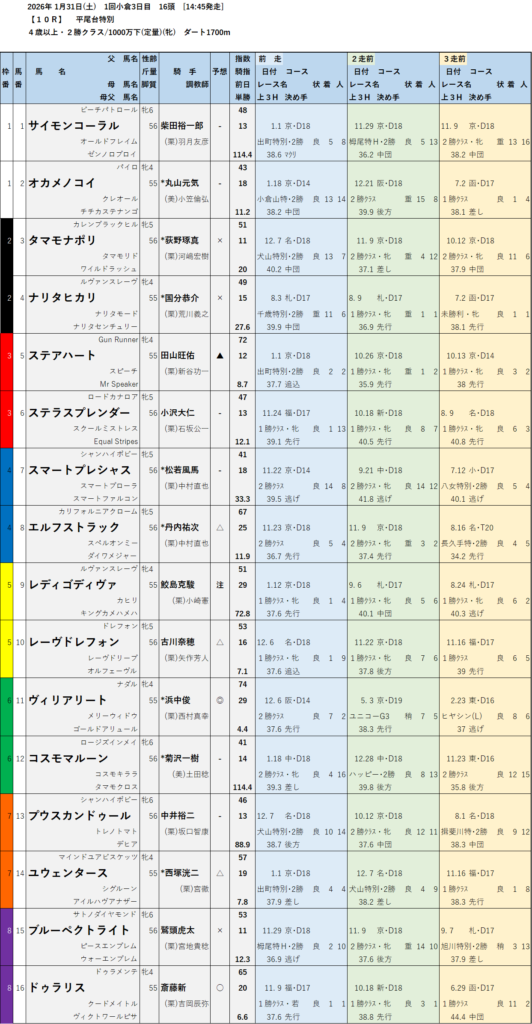 【特別レース予想】
