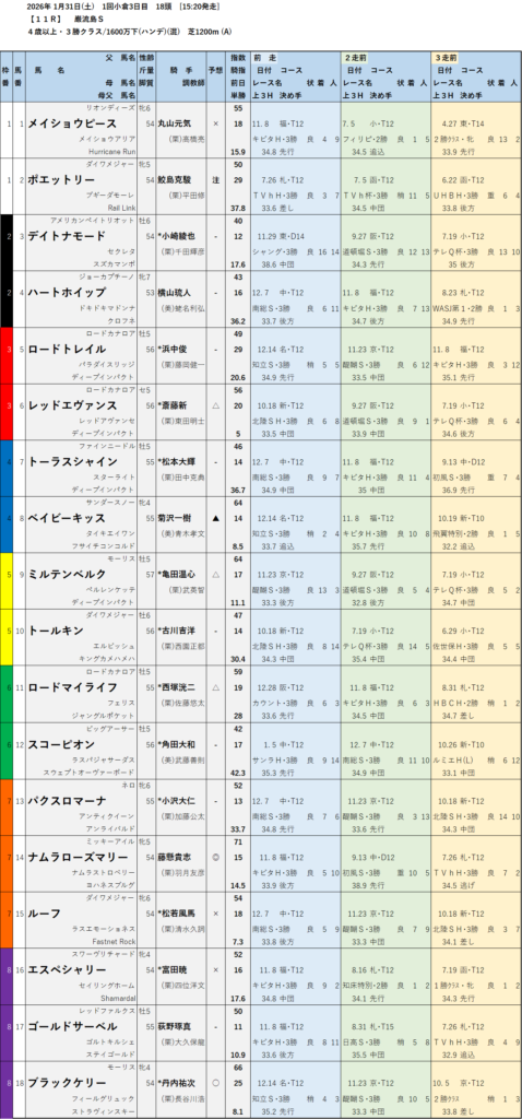 尚、以下の予想はテッパンレースの場合赤字で表記しています。