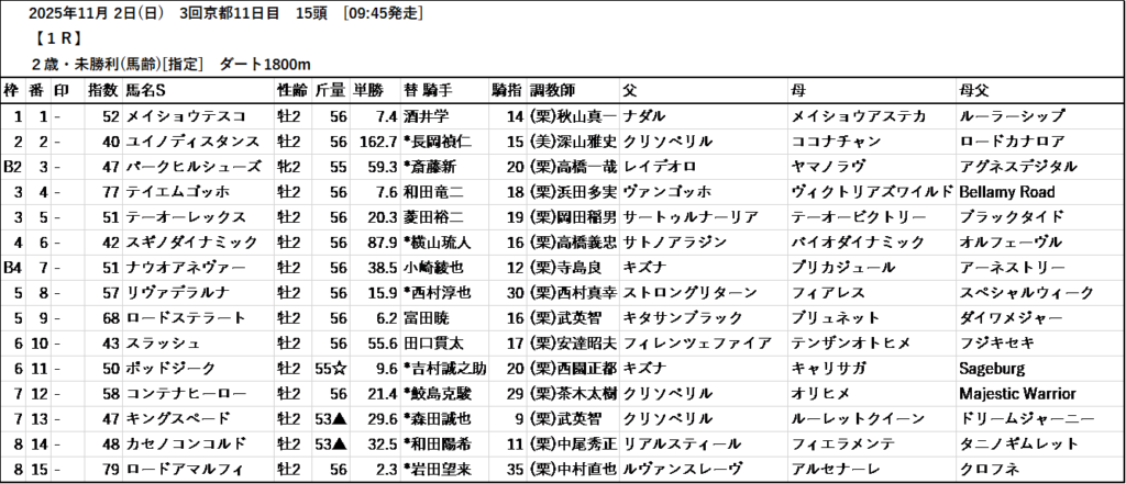 本日のテッパン馬は 1R・5R・11R・12R です。