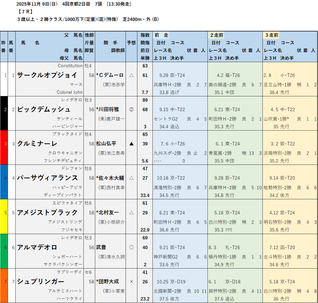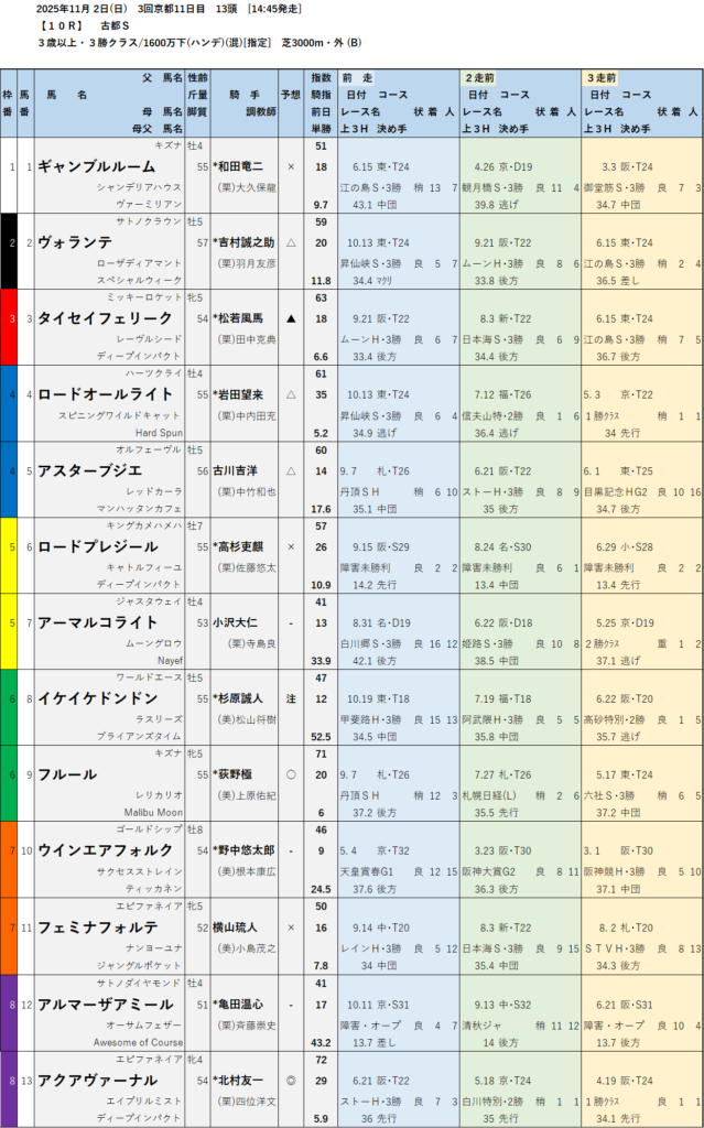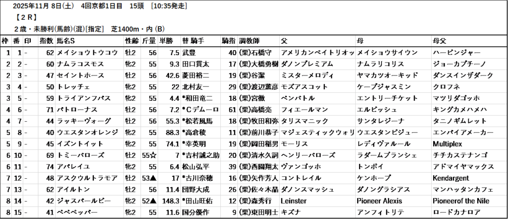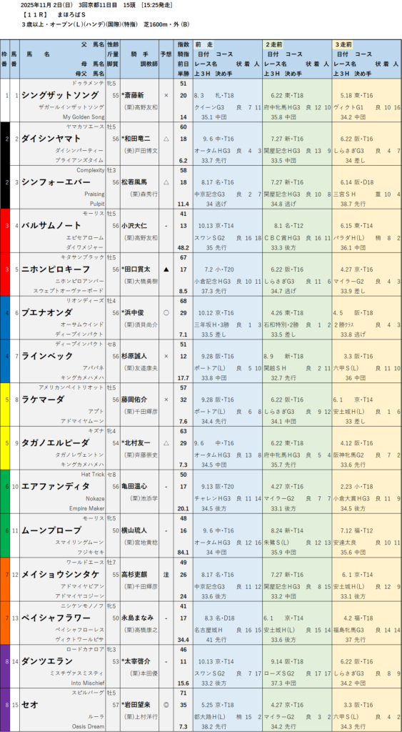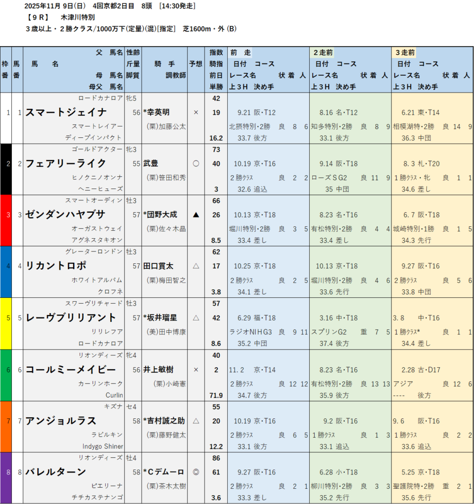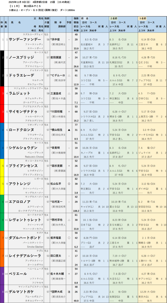 テッパン馬には届かないものの指数の高いレースも予想しています。